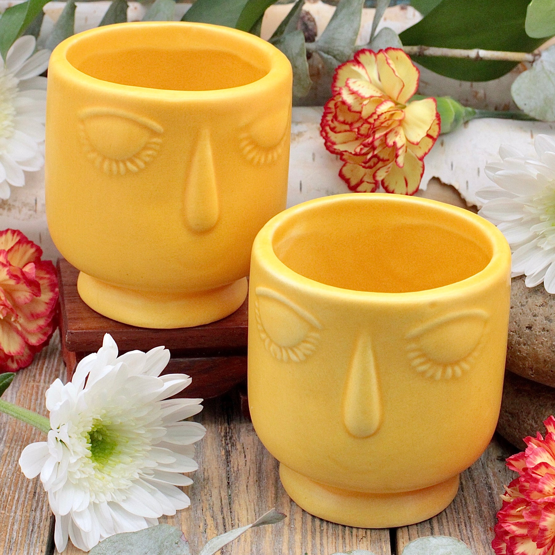Add cute flare to any plant with this unique Serene Face Planter Pot! Available in two summery colors: white and golden yellow.