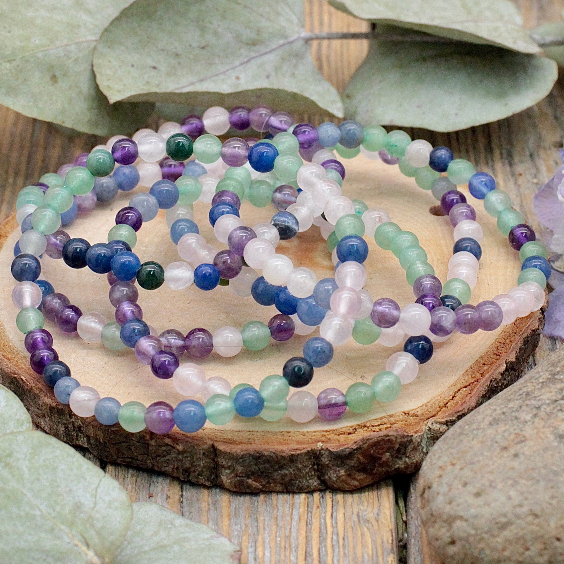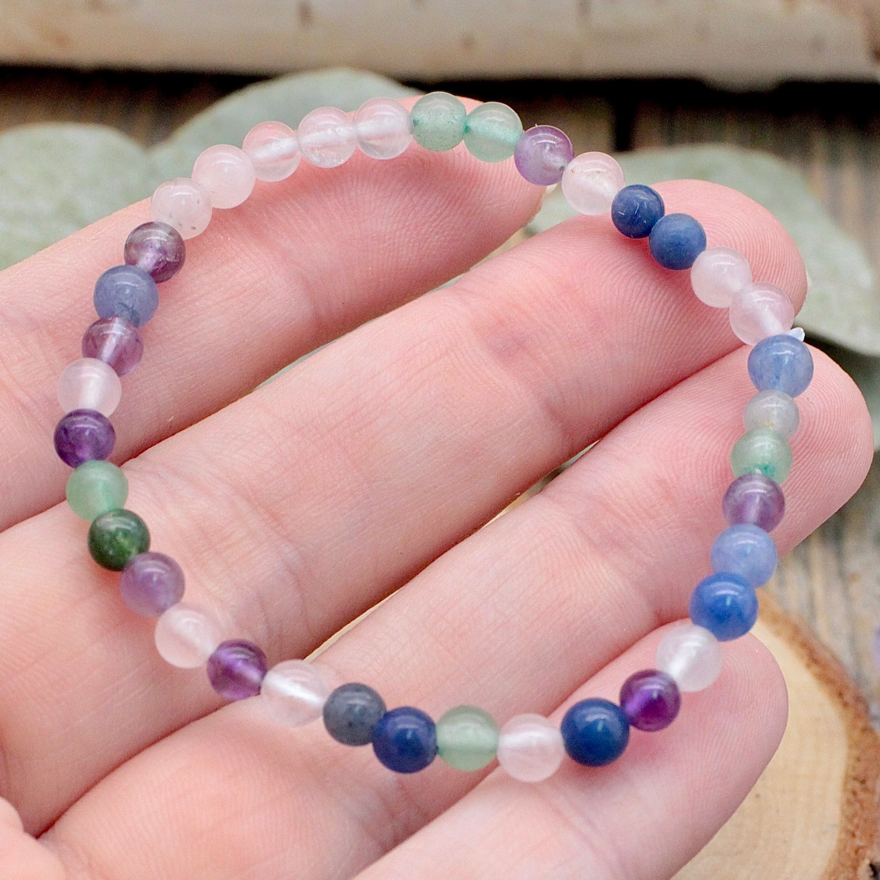 Nurture your child’s heart and spirit with this Mixed Stone Child's Bracelet, featuring Rose Quartz for love, Amethyst for calm, Green Aventurine for luck, and Blue Quartz for clarity. A gentle blend of support, perfect for emotional balance and everyday positivity.