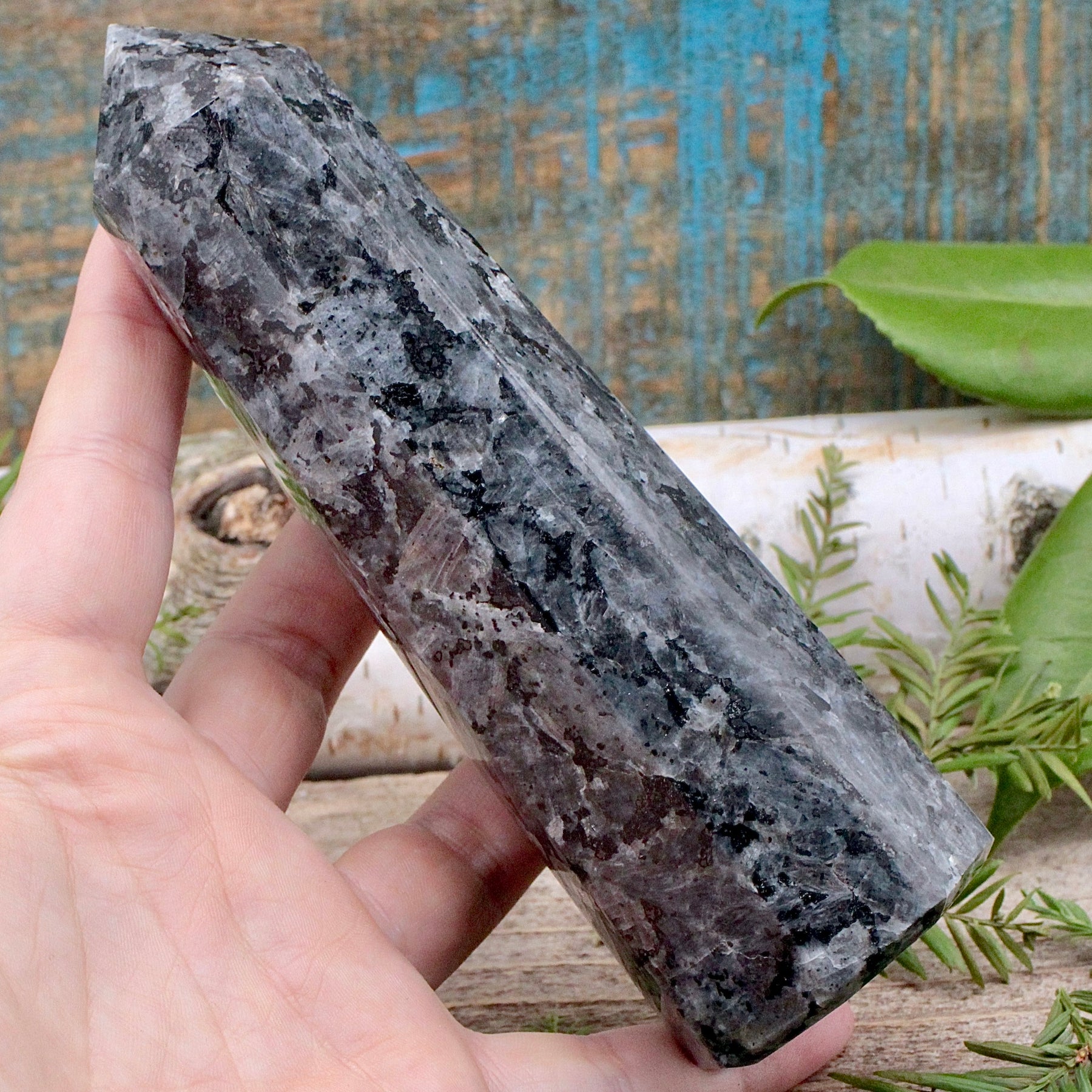 Elevate your space with this mystical Larvikite Tower. Known for its protective and grounding properties, this stunning crystal features mesmerizing silver-blue flashes that inspire inner transformation. Ideal for enhancing intuition and spiritual growth, it makes a perfect addition to your decor or a thoughtful gift.