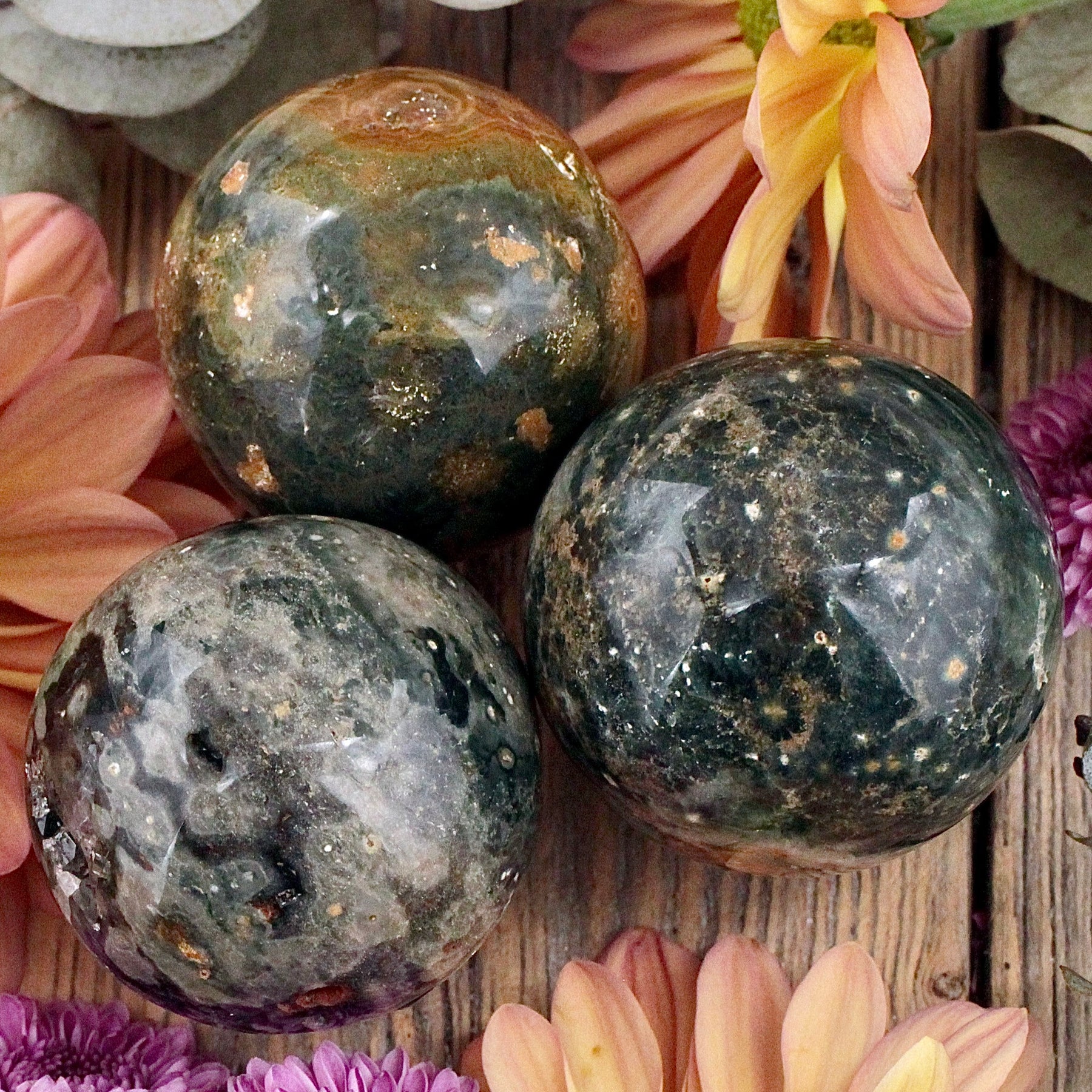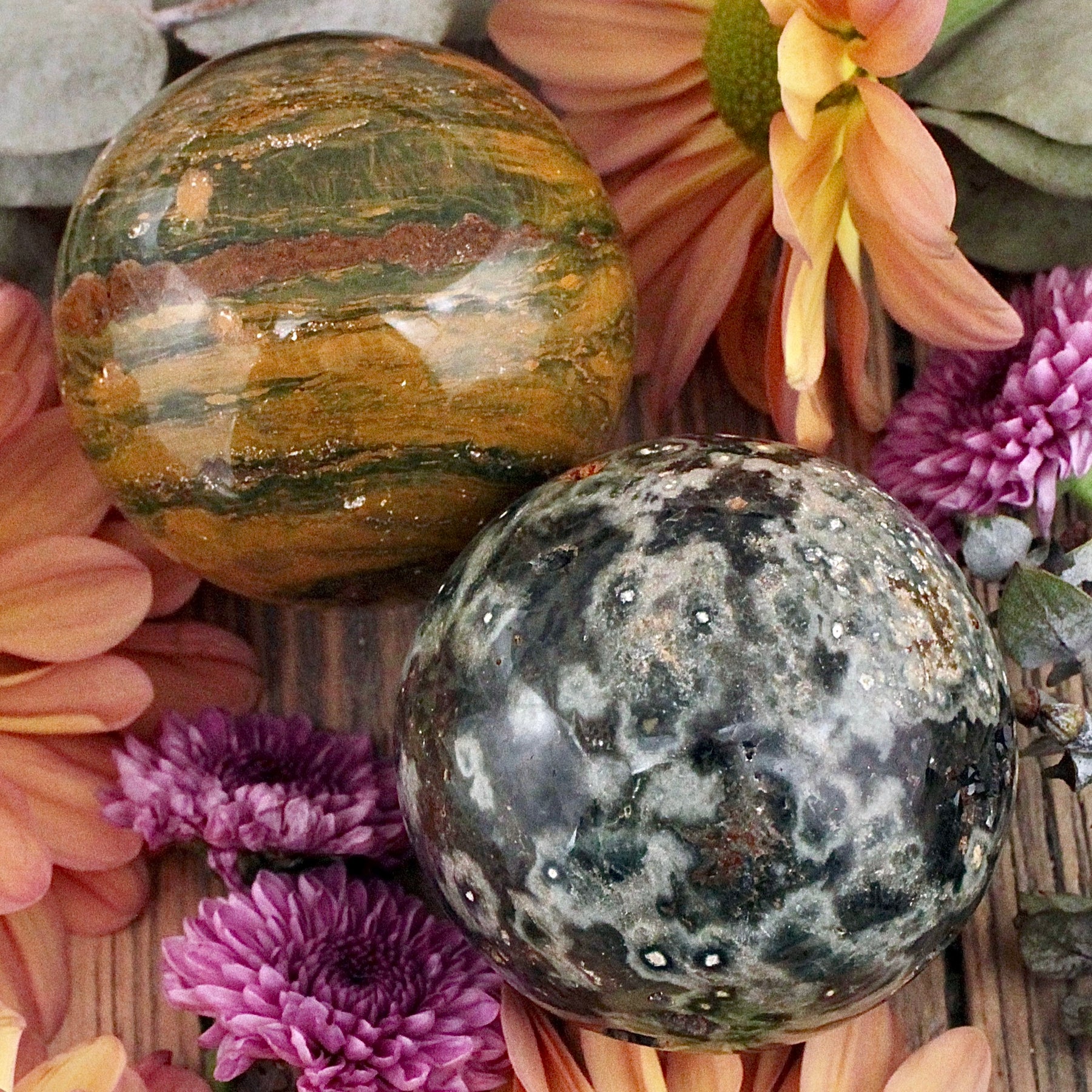 Photos are representative of the color and quality of the stones. Each sphere is naturally unique and sold separately. We work intuitively to select the one intended for you.