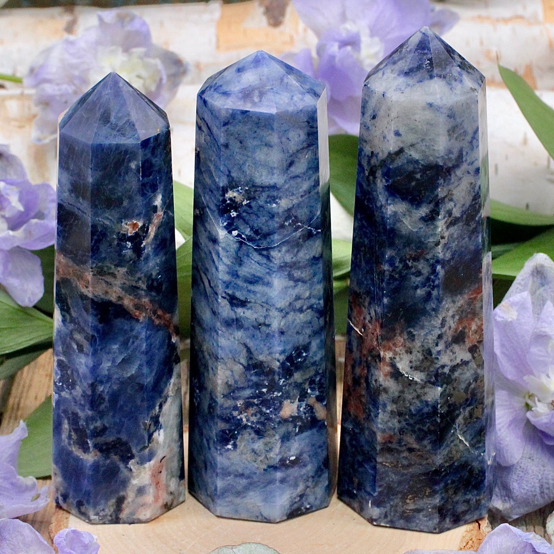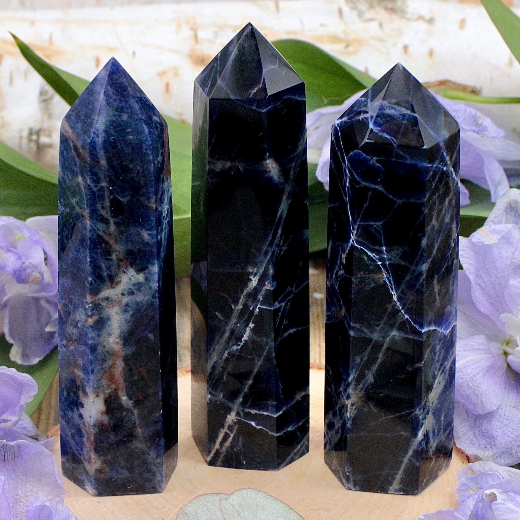 Speak your truth with confidence with the help of this Sodalite Tower. The deep, midnight blues and highlights of white remind us of lightening cutting through the night sky.