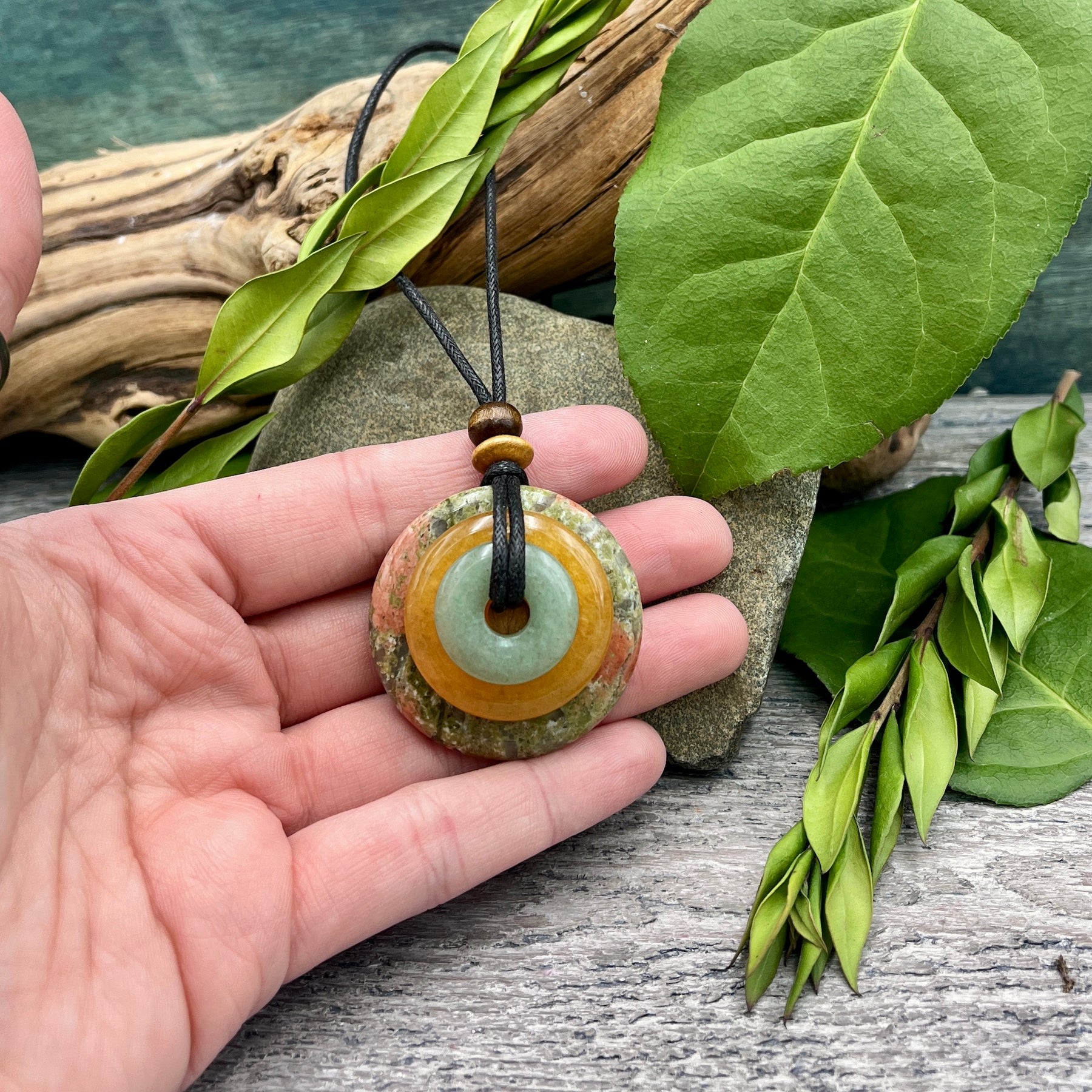 *Please Note: Our photos are representative. The stones included in this necklace can vary wildly in color and or pattern, so each pendant is naturally very unique, and the stones may not be in the exact order shown. Fret not though, because the stones will still carry all of the same properties listed above. We work intuitively to choose the most beautiful combination of stones for your necklace.