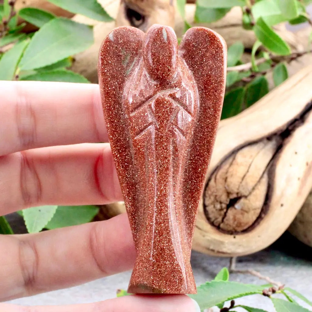 Rekindle your ambition and drive with this Goldstone angel. Goldstone has the power to invigorate the inner voice that drives us to success and this angel carving can remind you of the angels that are overseeing your endeavors.