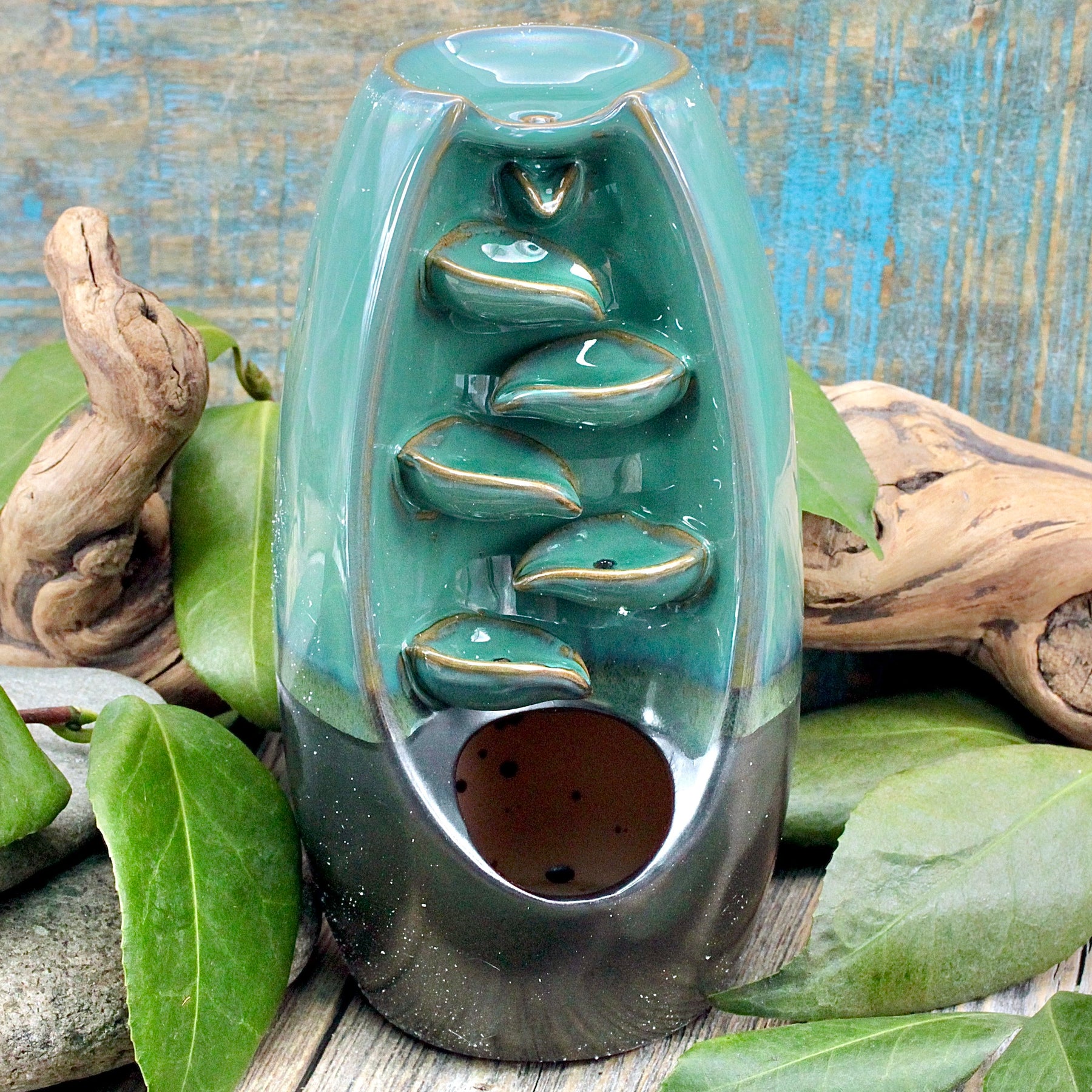 Uplift your space with this elegant Green Ceramic Backflow Incense Burner. Delicately crafted to evoke tranquility, it adds a serene touch to any room.