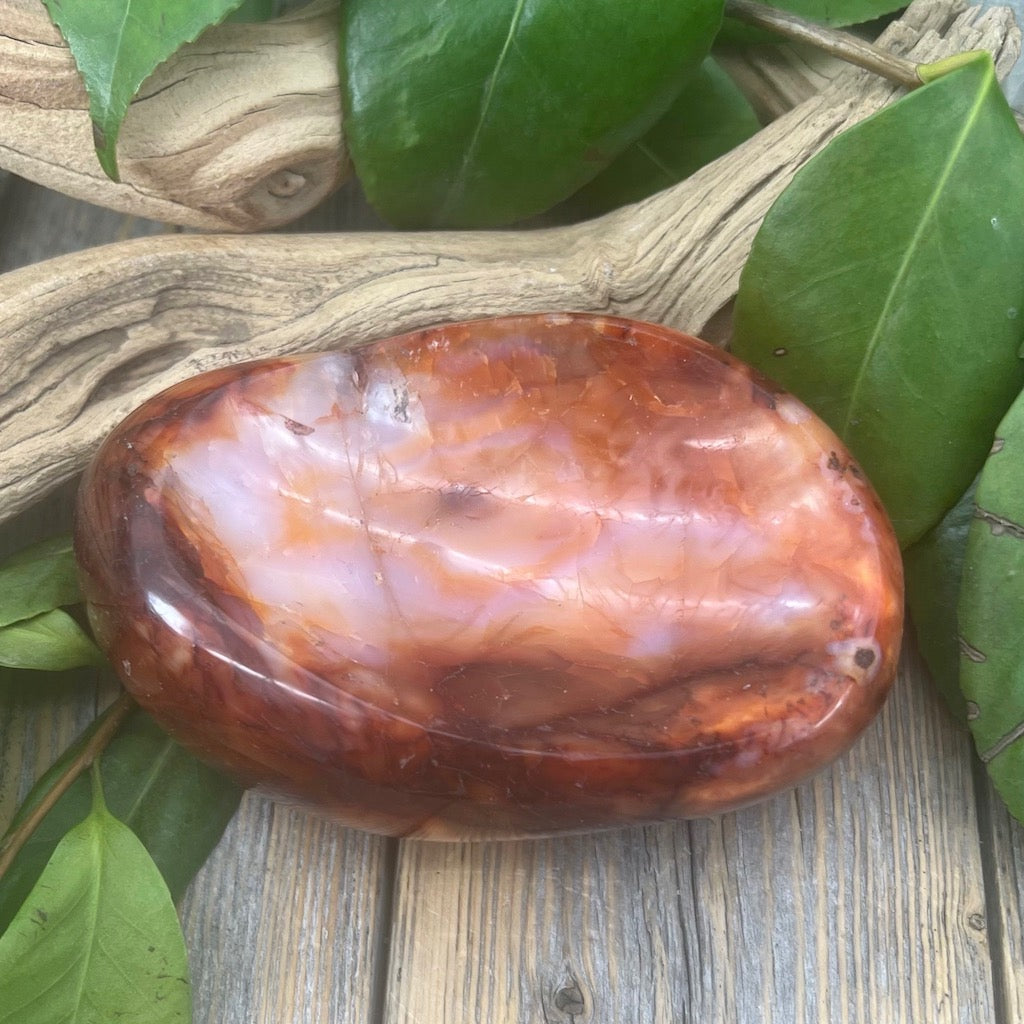 Carnelian is a grounding stone that is excellent for restoring vitality and motivation and for stimulating creativity. It has the ability to cleanse other stones. The stone emits positive energy and aids in the flow of new ideas. It is useful in overcoming abuse. Carnelian helps you trust yourself and overcome negative conditions.