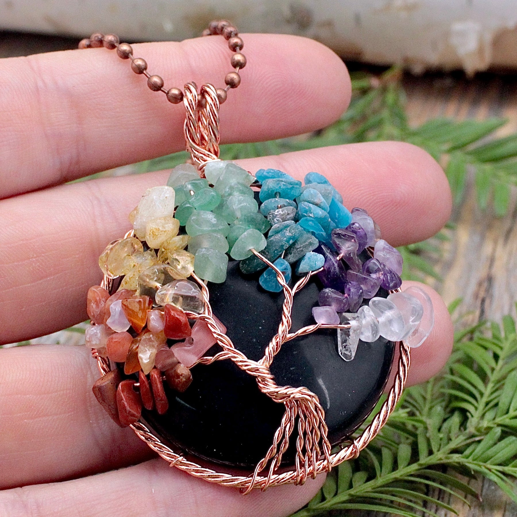 Black Jasper Chakra Tree of Life Copper Wire Wrapped Pendant