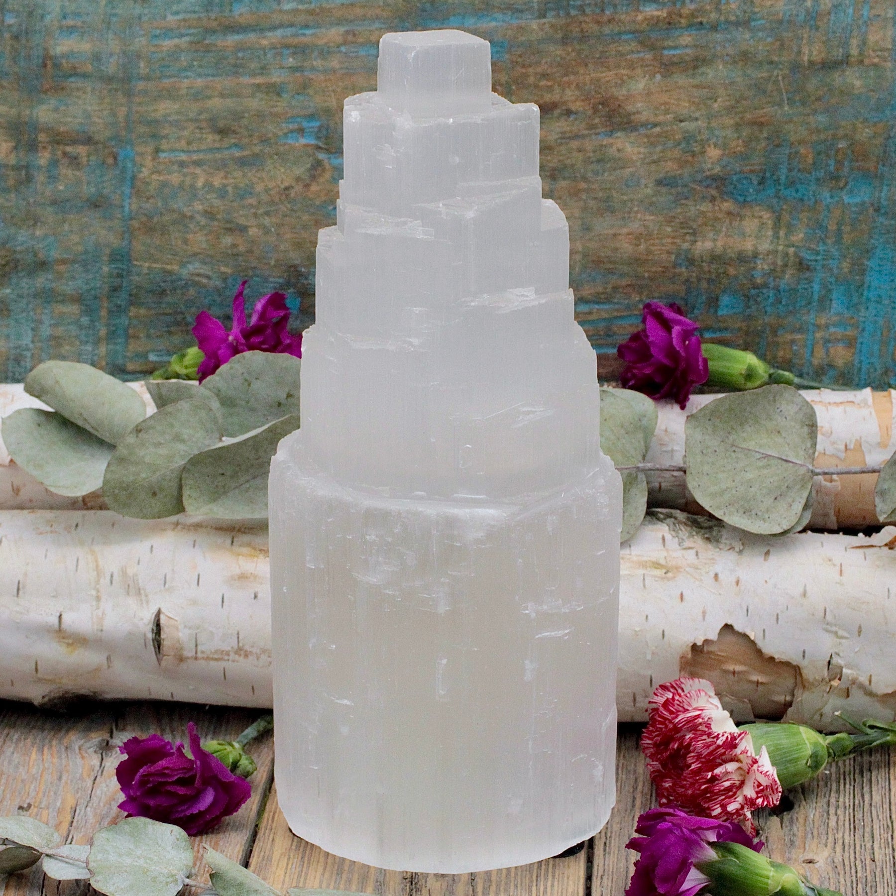 Selenite is a protective and healing stone that taps into pure divine light. It protects your aura and prevents external forces from influencing your mind, bringing deep peace, clarity, and wisdom. It is excellent for meditation and spiritual work and can enhance psychic abilities. Physically, it helps reduce inflammation and pain. Selenite also has strong cleansing energy that can be used to clear and recharge other crystals.