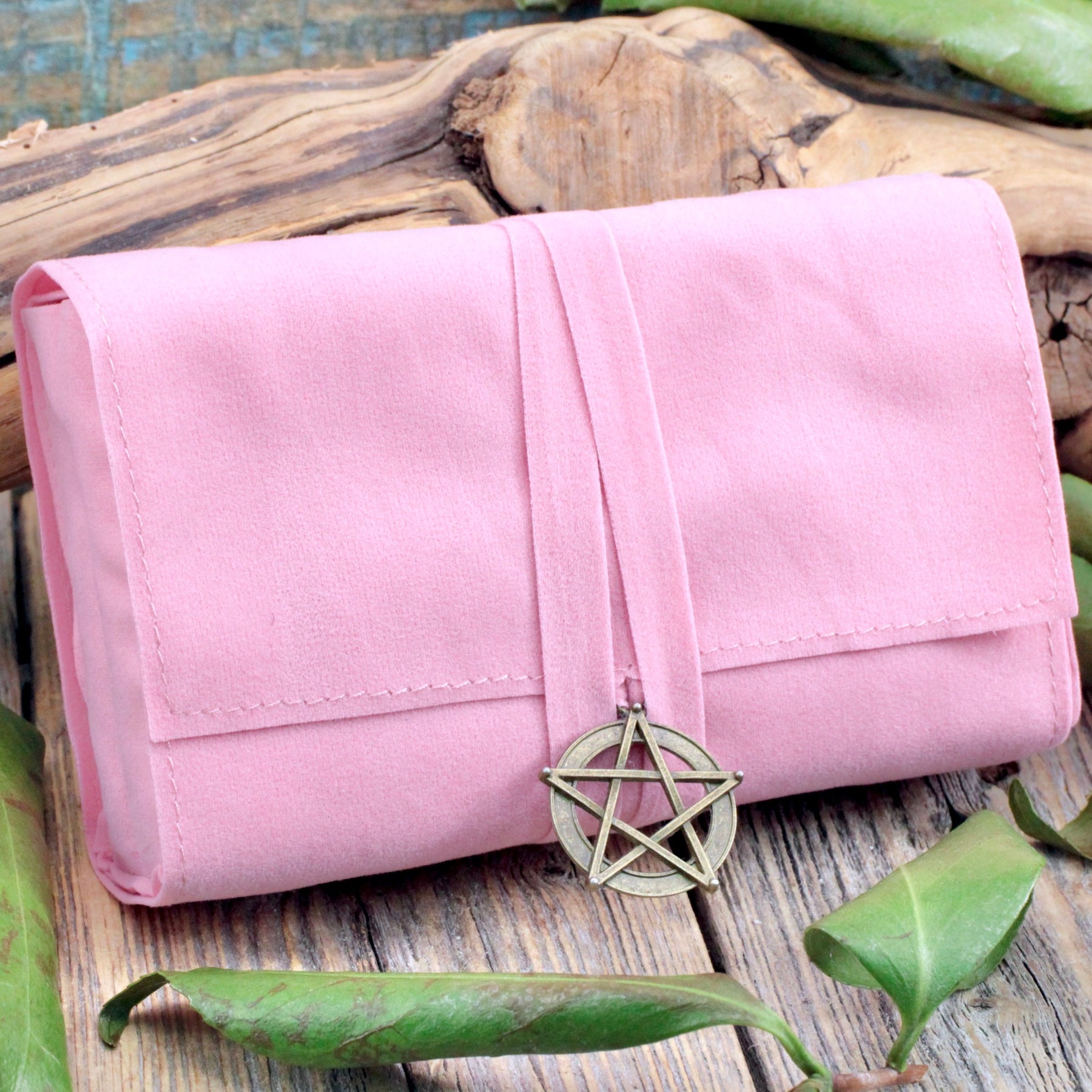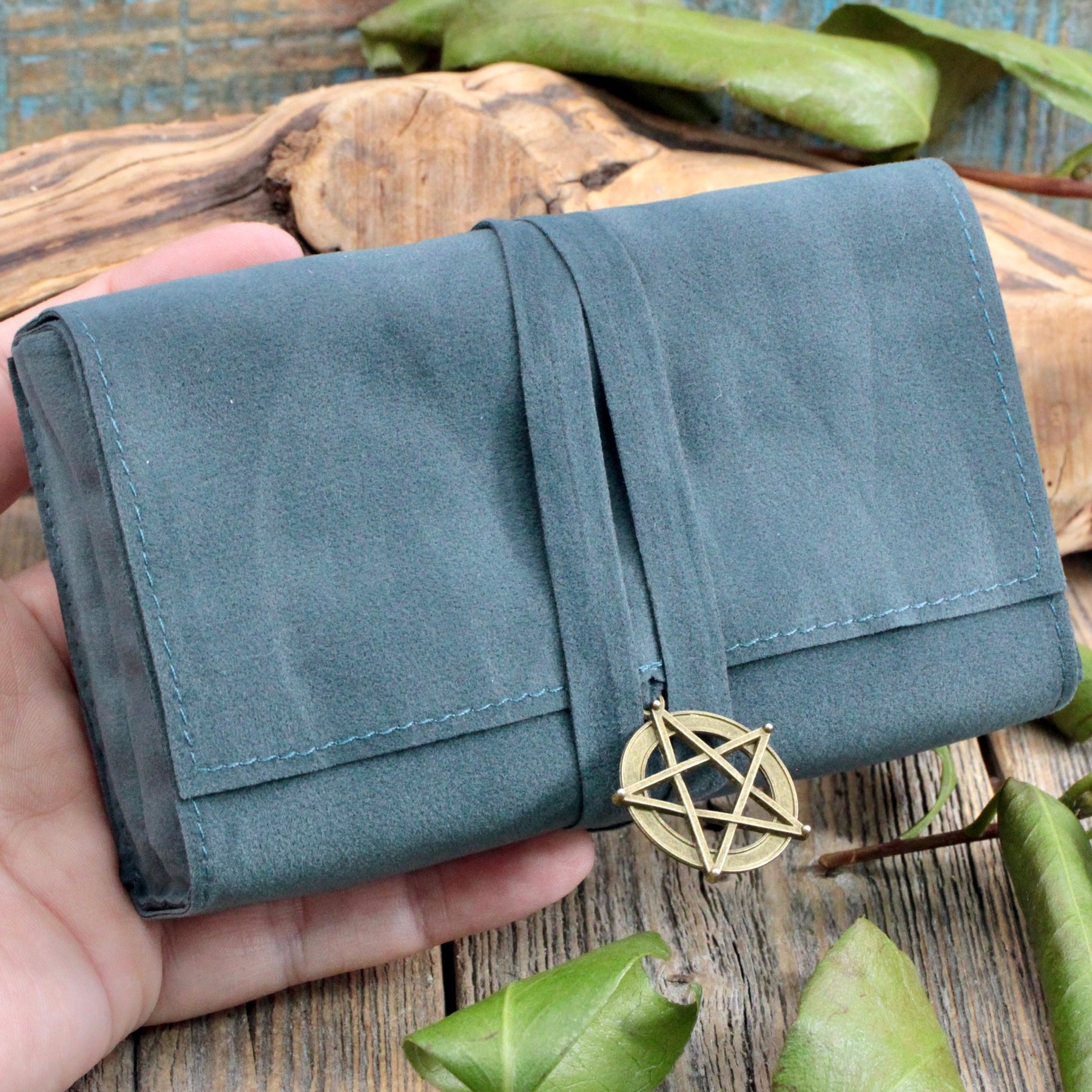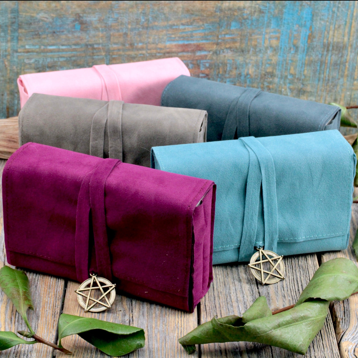 Embark on your tarot voyage with this exquisite Tarot Deck Bag with Pentacle Charm. Meticulously crafted with a blend of artistry and precision, this holder provides a striking sanctuary for your tarot deck, ensuring both safety and organization.