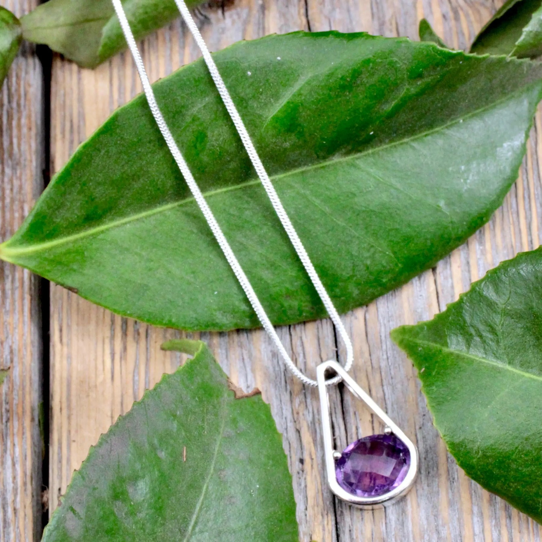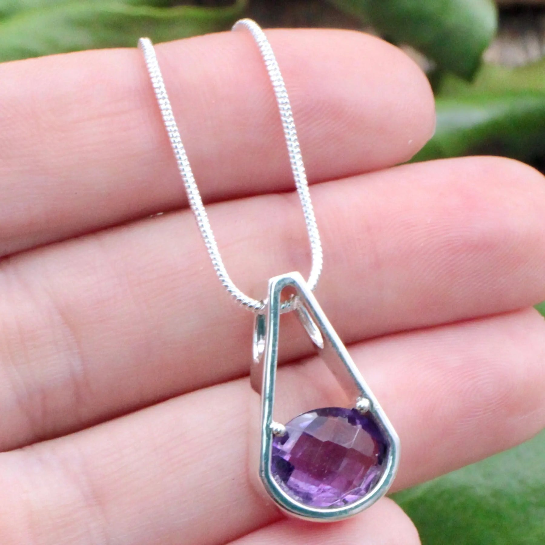 Faceted Amethyst Drop Pendant - Sterling Silver
