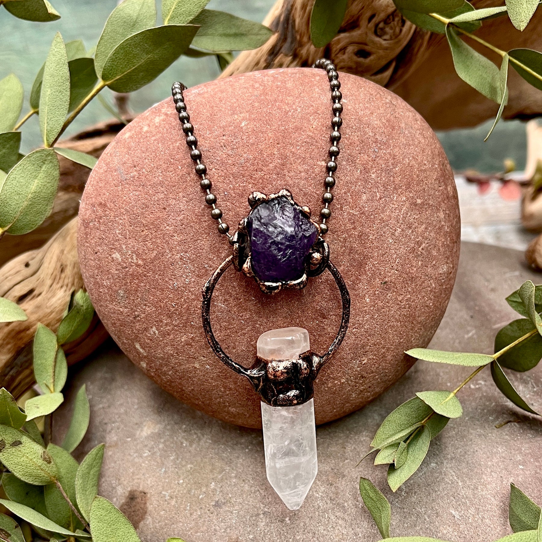 Quartz Point Necklace with Amethyst Chunk