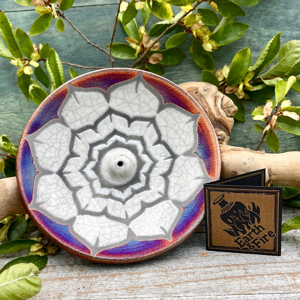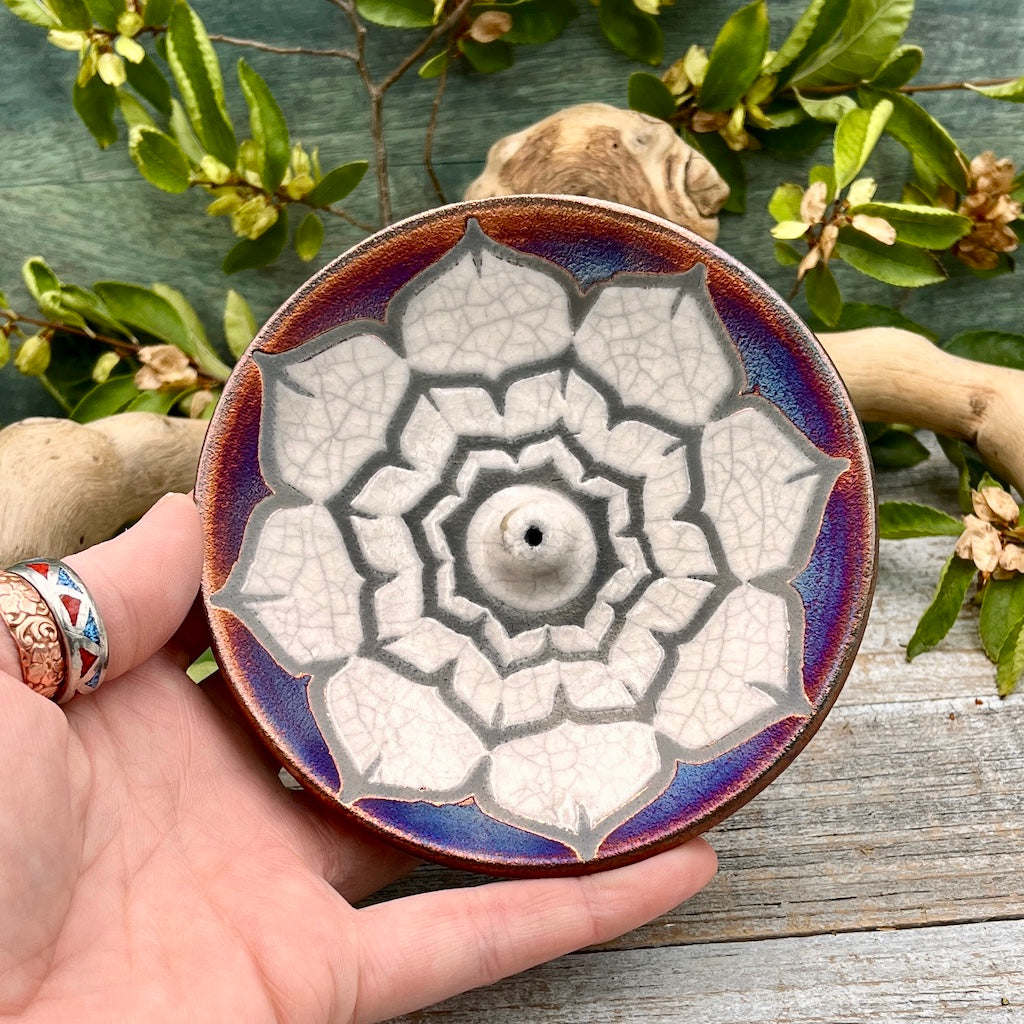 Raku Pottery Incense Holder -Lotus Flower