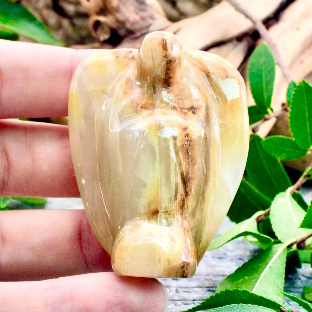Reawaken your inner strength with this Calcite angel carving. Calcite is stone of growth and balance. It helps us to make better decisions, allowing our self-esteem to grow, and our self confidence to strengthen.