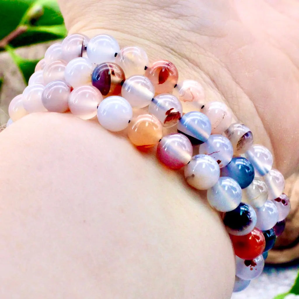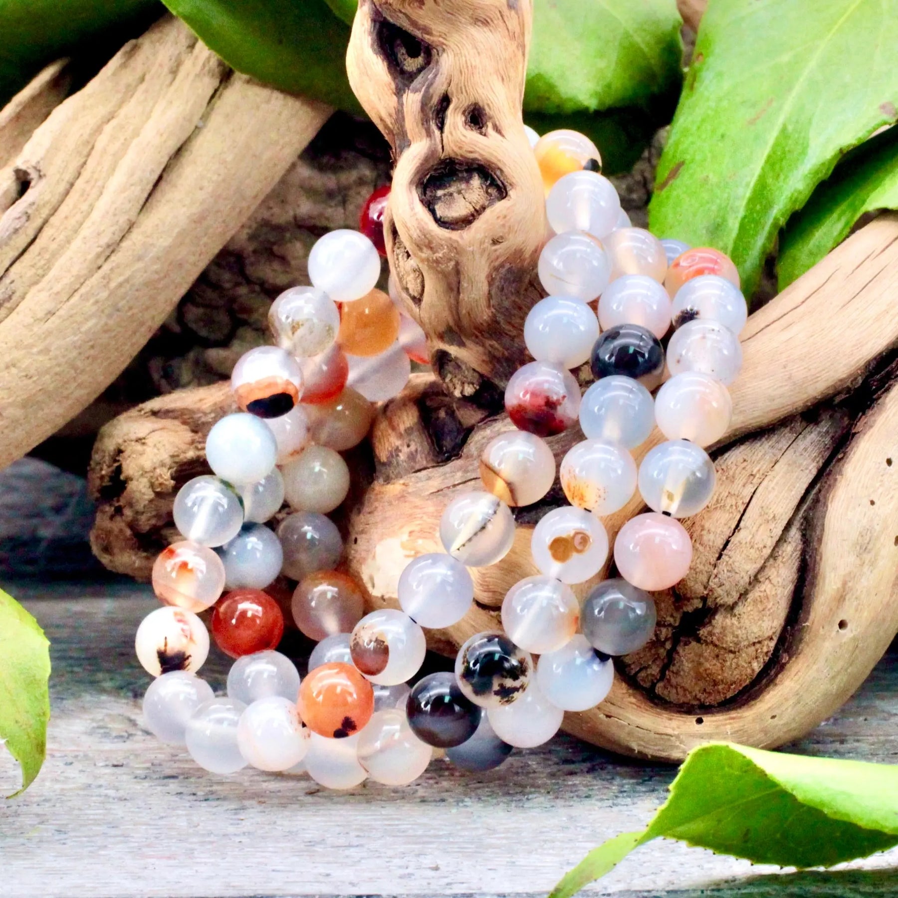 Find stability in the chaos with this Dendritic Agate bracelet. Dendritic Agate allows us to move through life with confidence, viewing problems as challenges and persevering. As such, we are able to grow into strong, balanced beings.