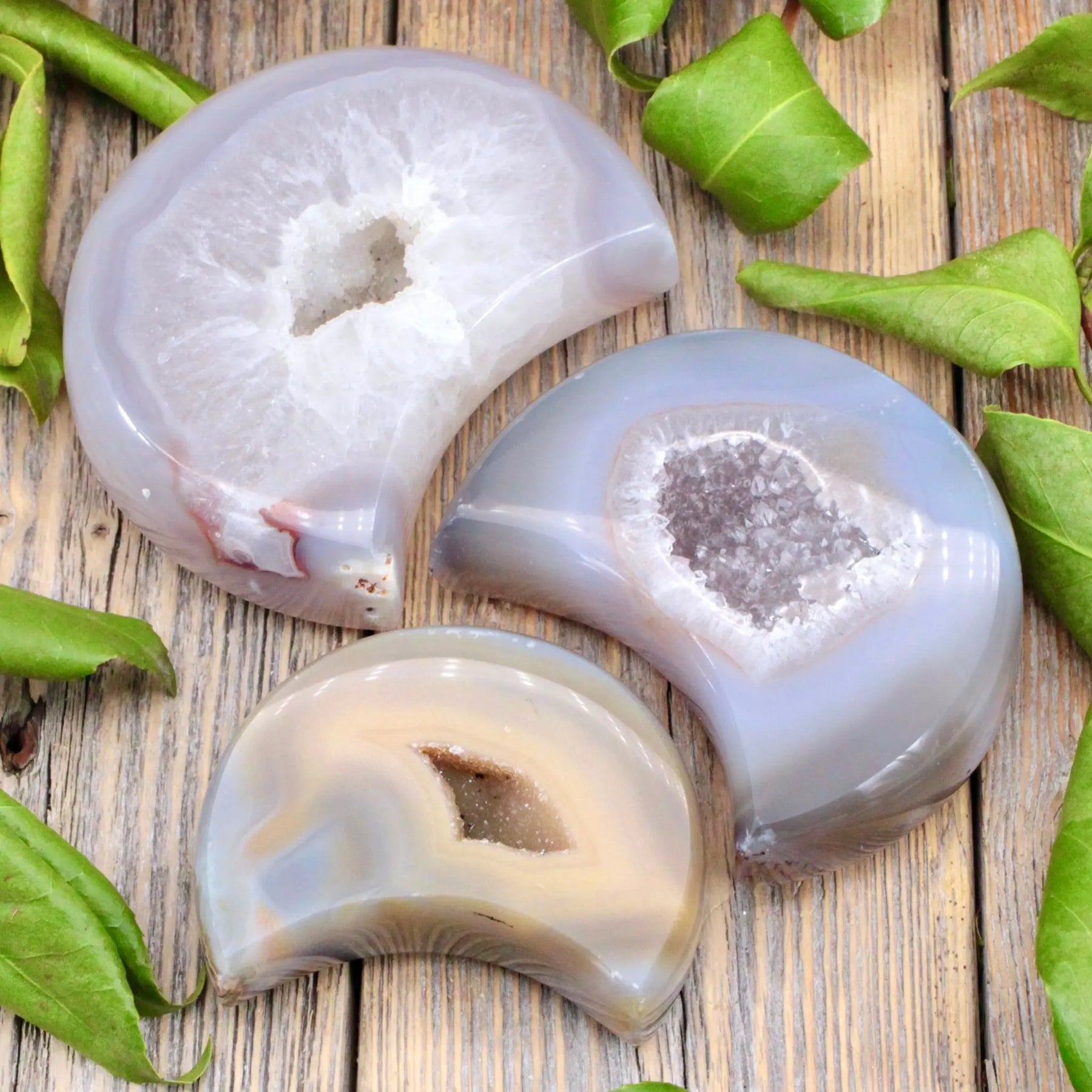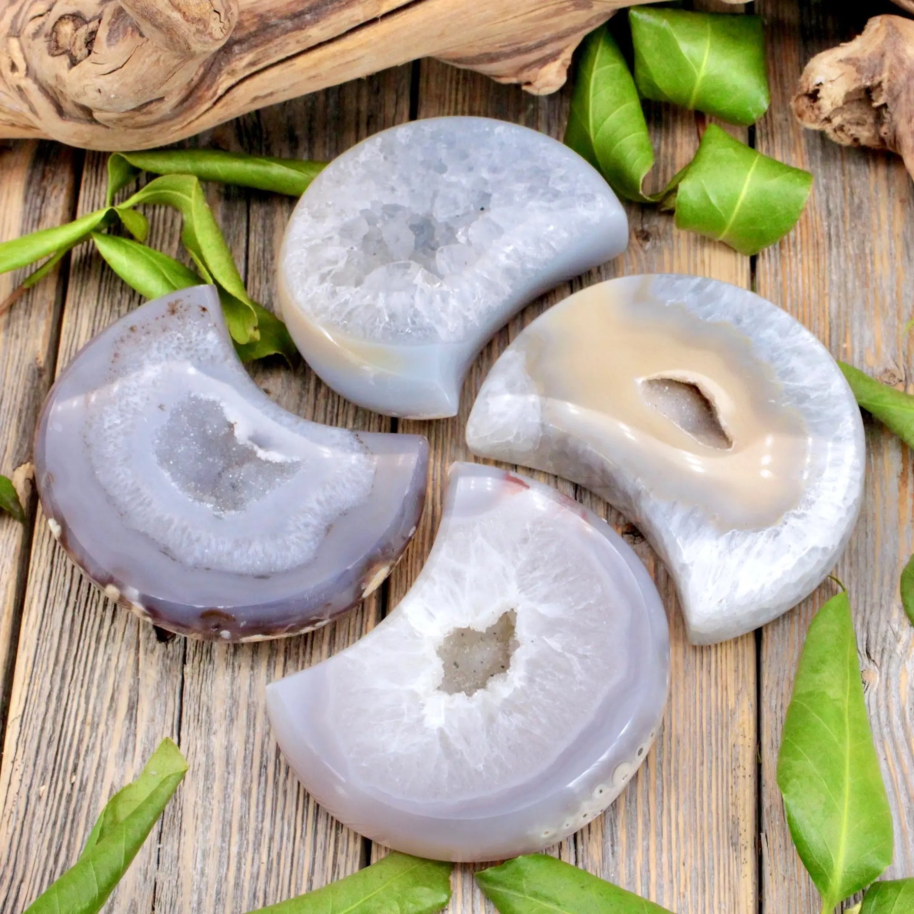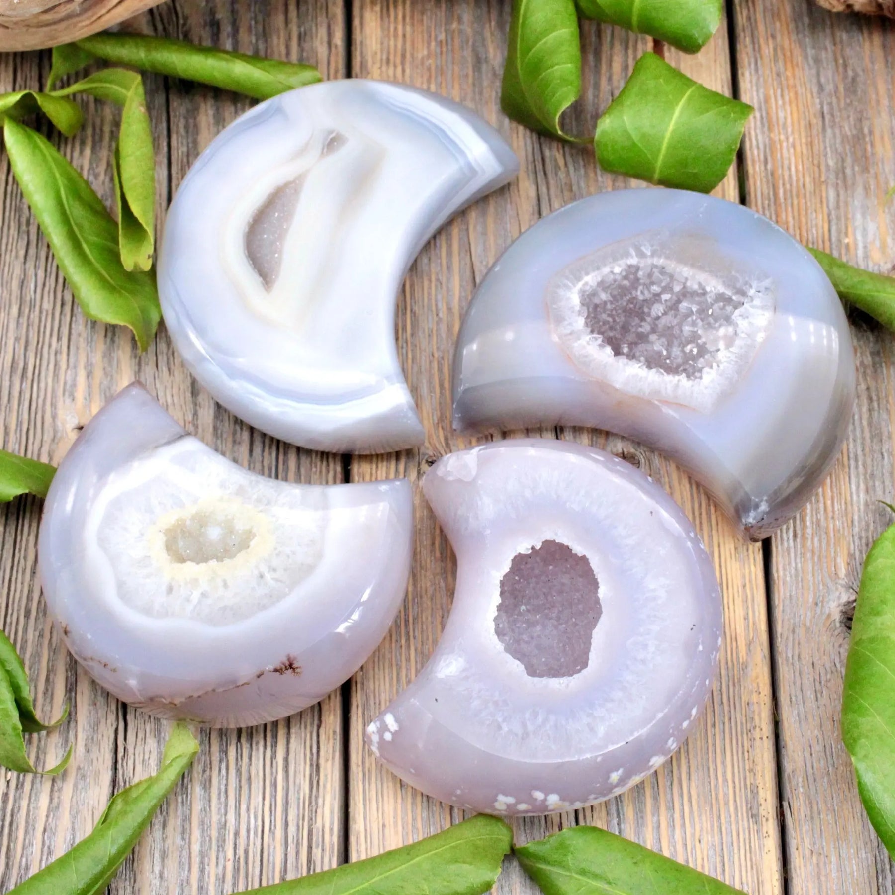 Attract self-growth and positive energy with this Agate Druzy crescent moon. Agate Druzy is wonderful for enhancing self-image and allowing us to see the best in ourselves.
