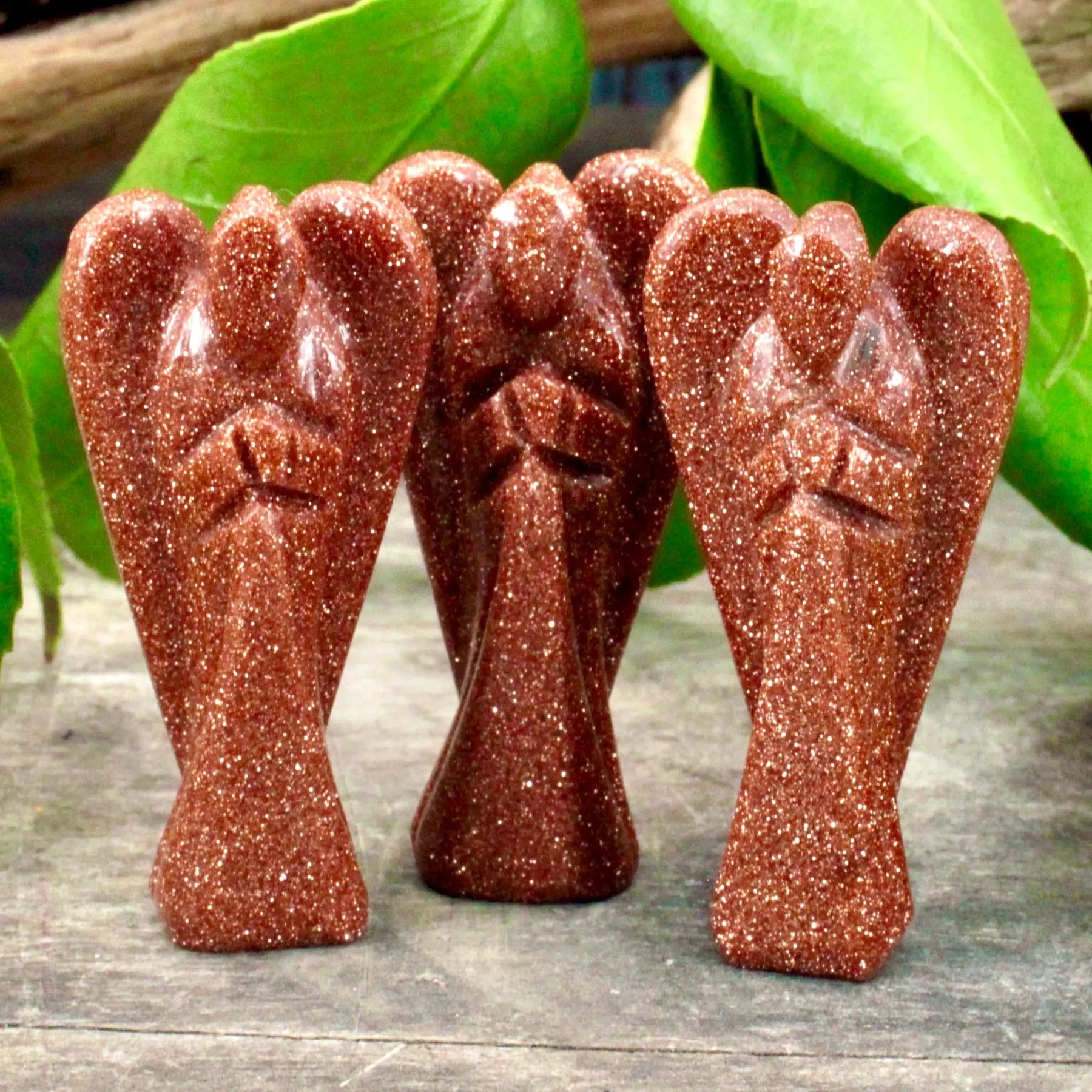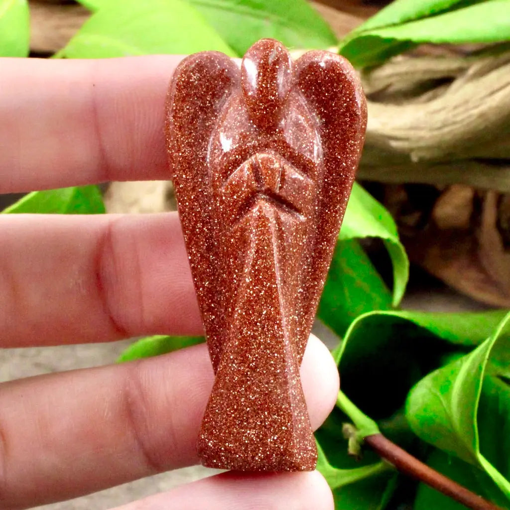 Fire up your ambition with this Goldstone angel. Goldstone is a stone of creative energy and achieving your dreams.