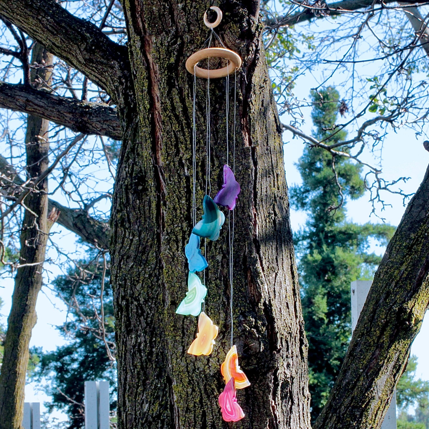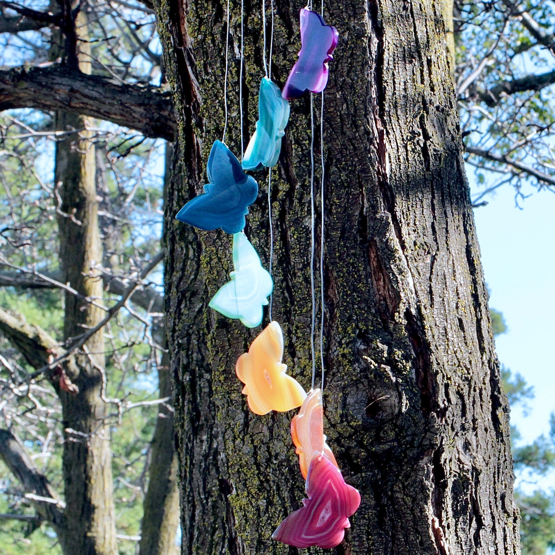 Unwind to the soft whispers of the breeze with this Agate Butterfly Windchime. The subtle melodic tones produced by the Agate butterflies, swaying gracefully in the wind, are certain to bestow the same tranquil grounding that this stone provides.