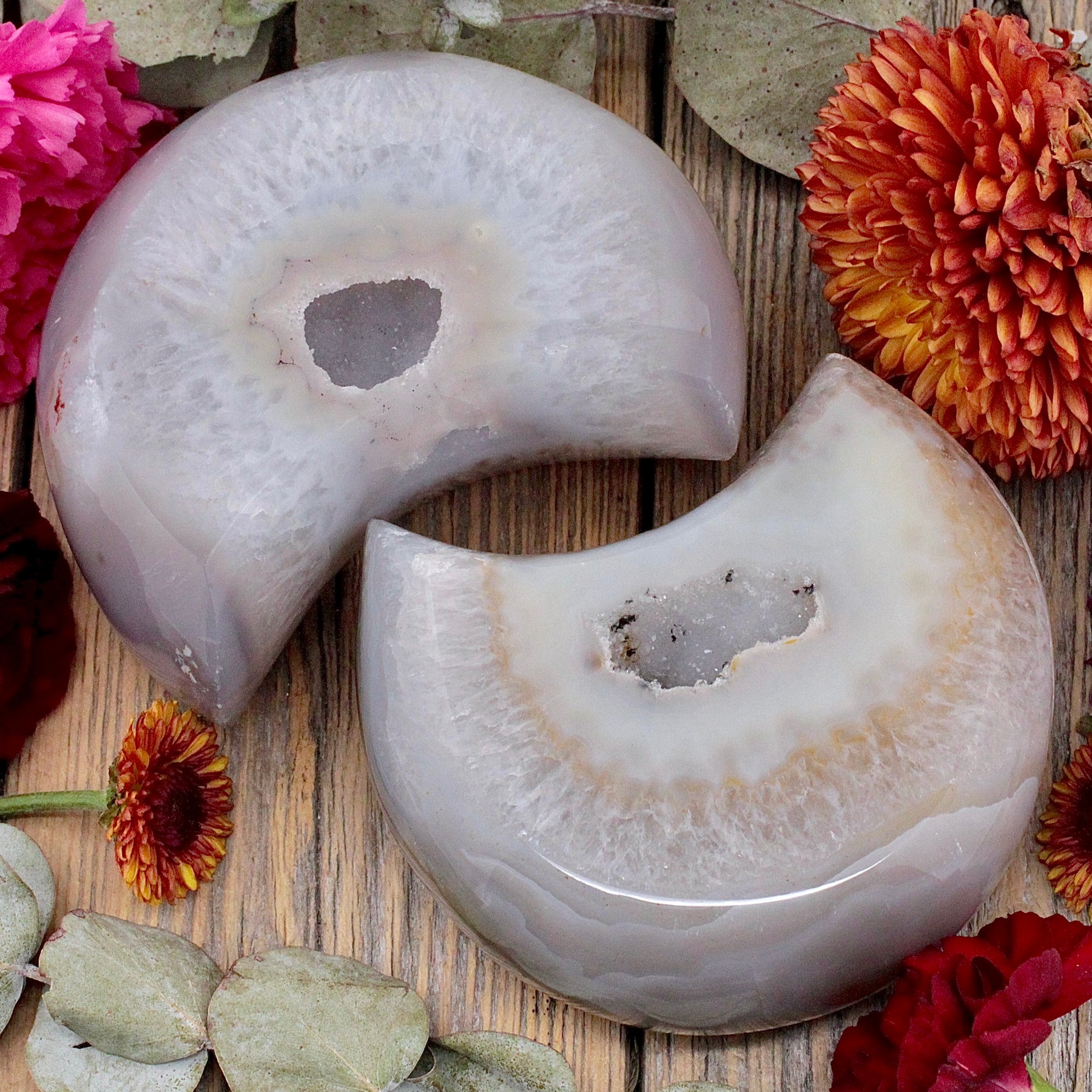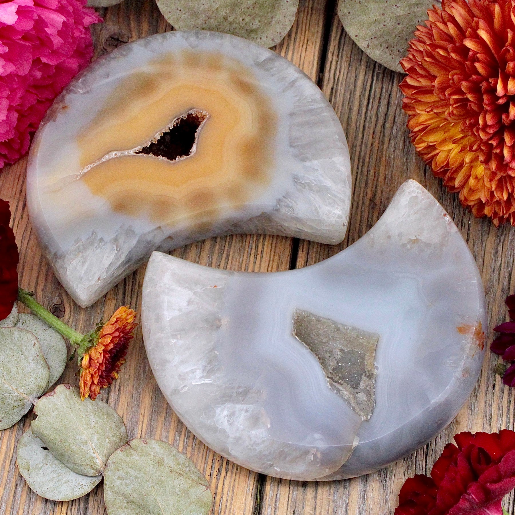 A grounding stone that balances the mind, body, and spirit. It heals the heart of past wounds and encourages perseverance. This stone facilitates self-acceptance, helping us be our most authentic selves. It also deflects anger and negativity. Agate leads you to a path of personal and spiritual growth.
