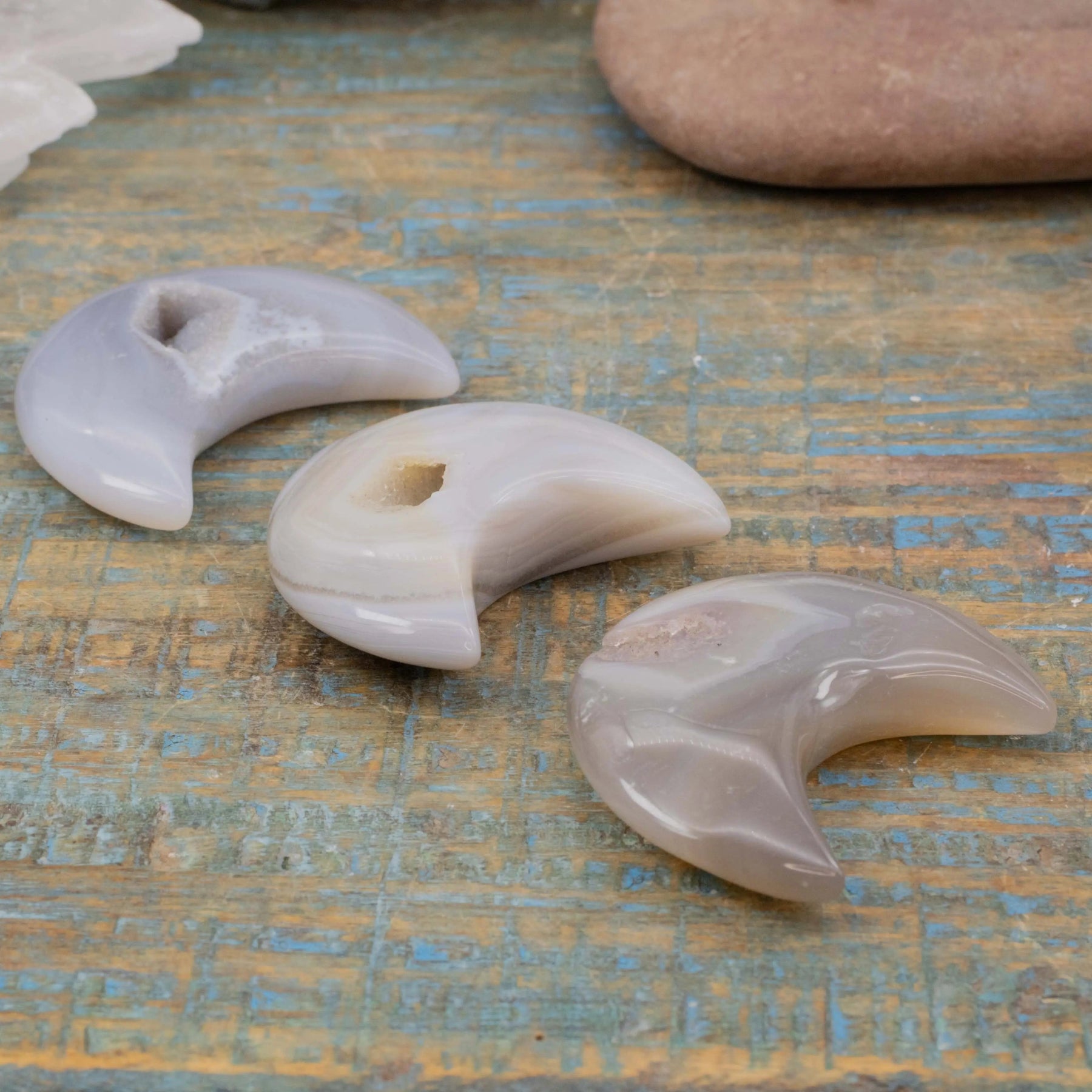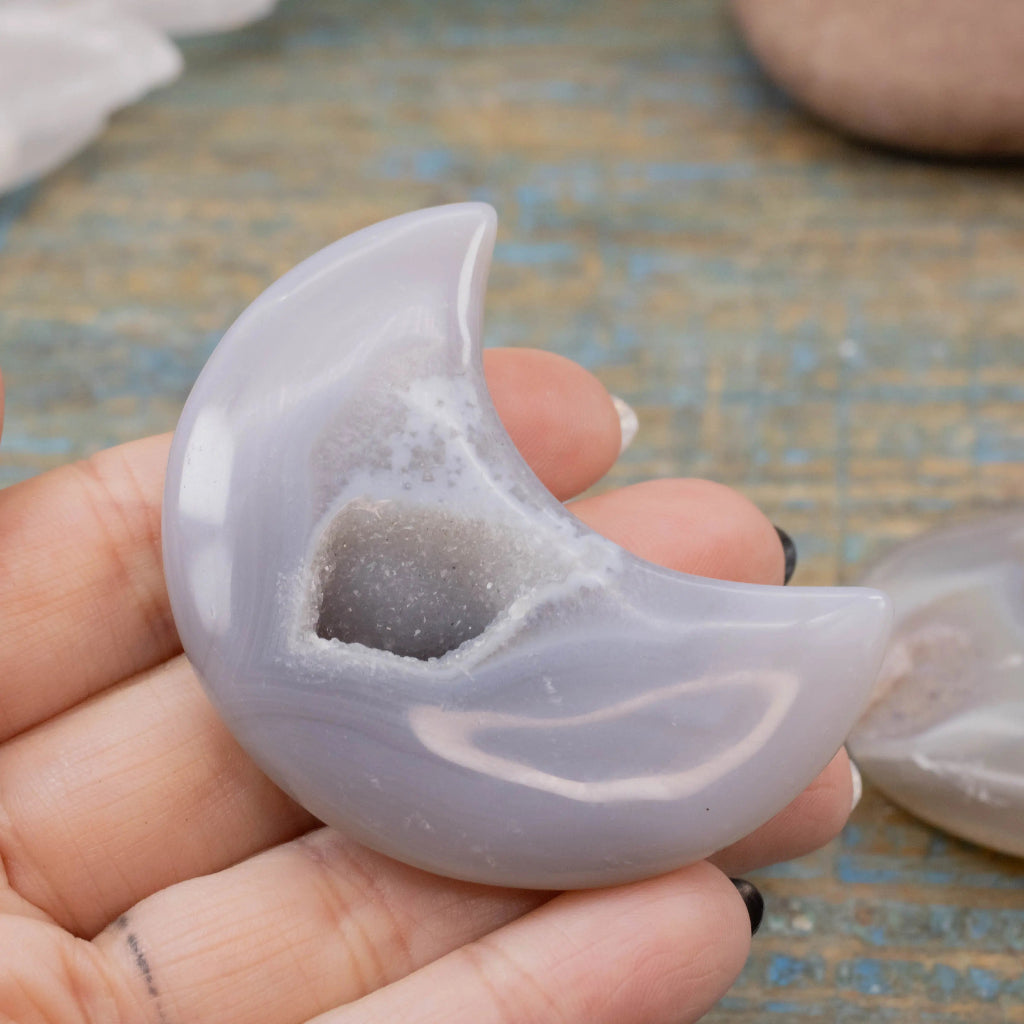 Find confidence and balance with this Druzy Agate Moon. The gentle energy of this stone help one to make a deeper connection to their authentic self.