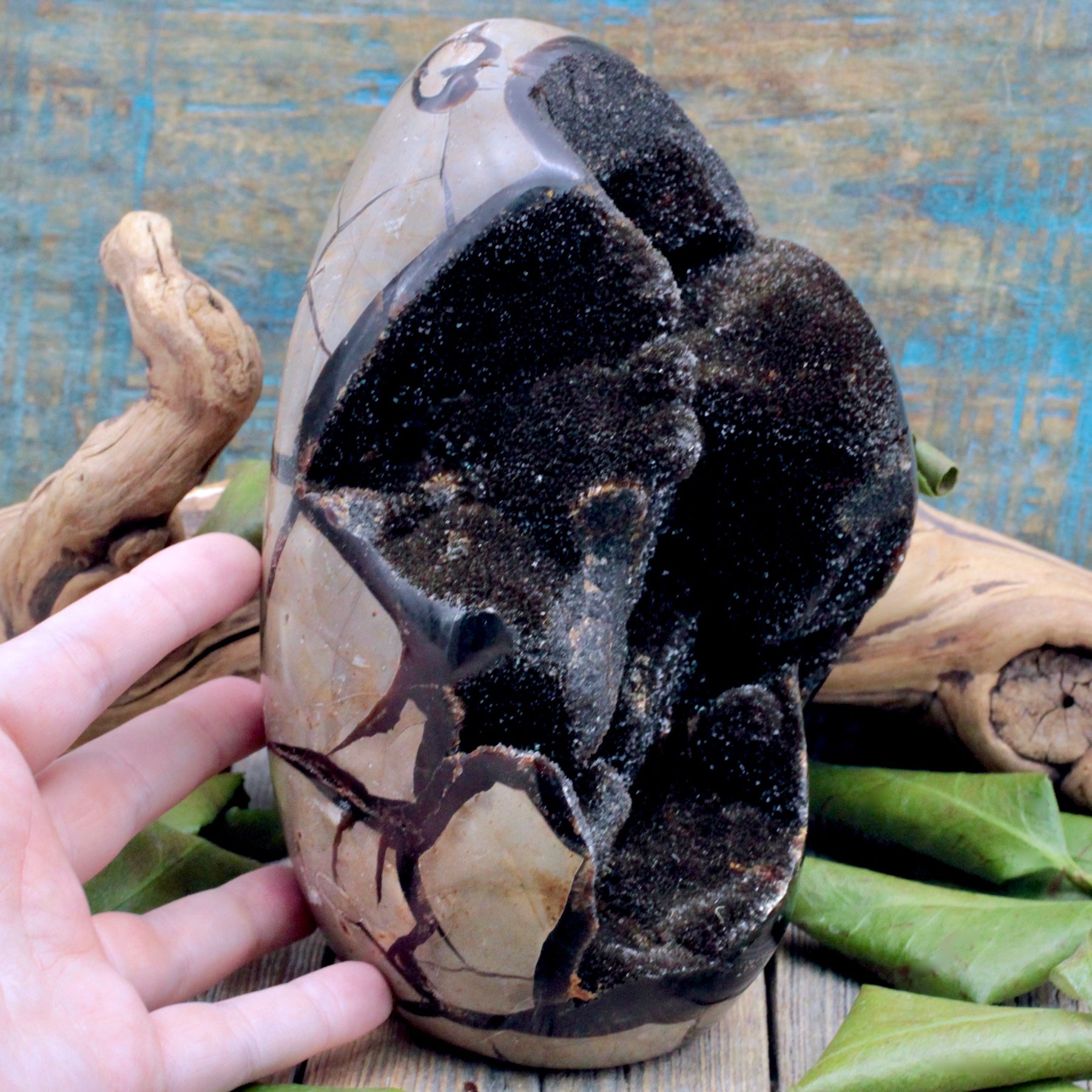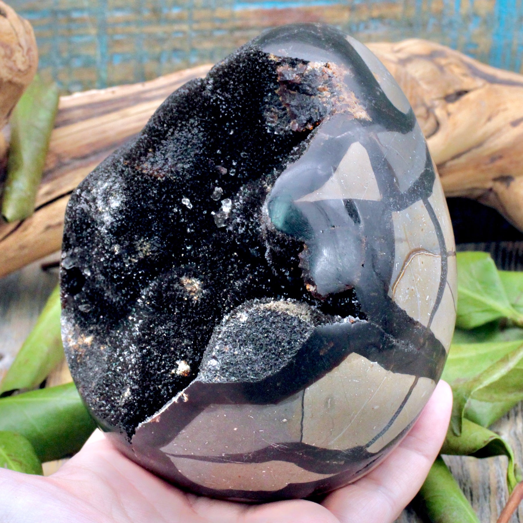 Septarian is a joyful stone that brings harmony and positive vibrations to any situation. It is a powerful stone for any type of group work. It supports the development of new ideas and creations with patience, determination, and creativity. It aids communication and public speaking. Septarian encourages self nurturing and self care.