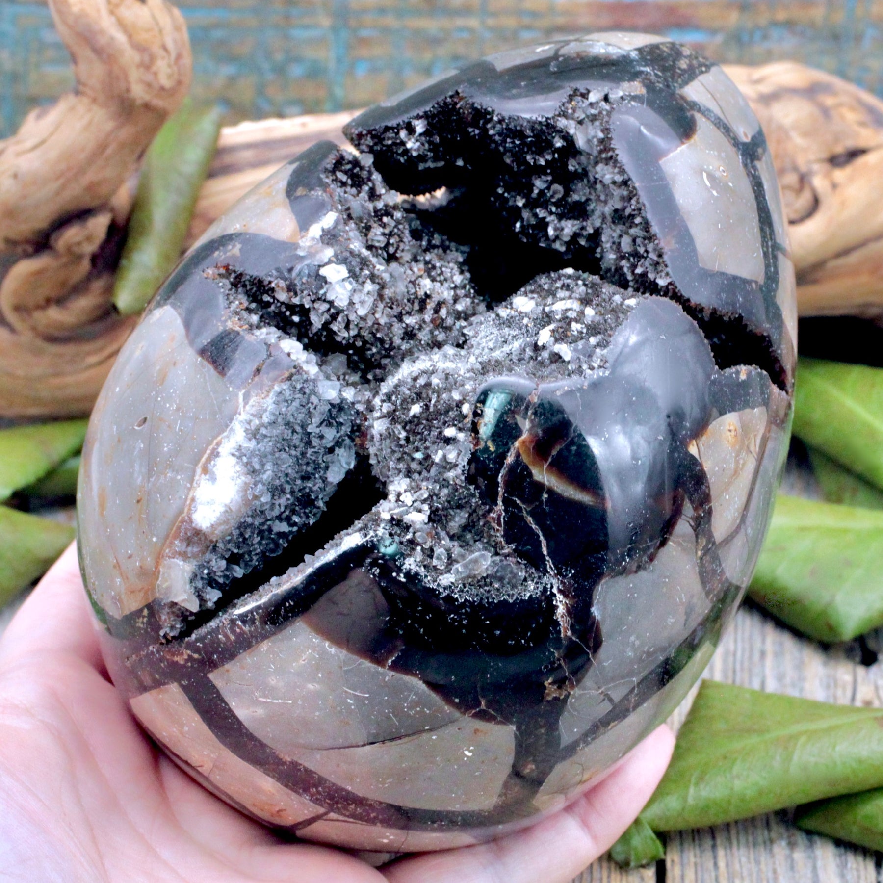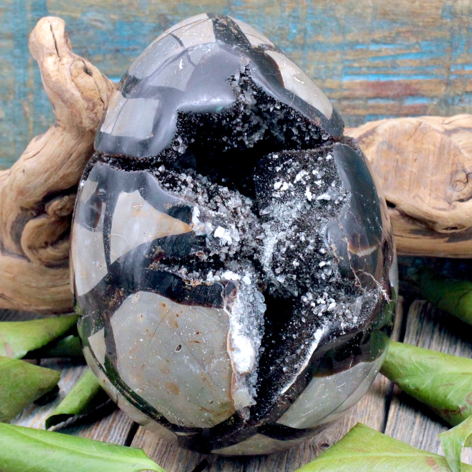 Enhance your creative flow with this mesmerizing Septarian Egg. This exquisite stone invites you to engage in profound contemplation. Embracing the energies within this Septarian egg can open doors to fresh inspirations and a surge of uplifting vibrations.