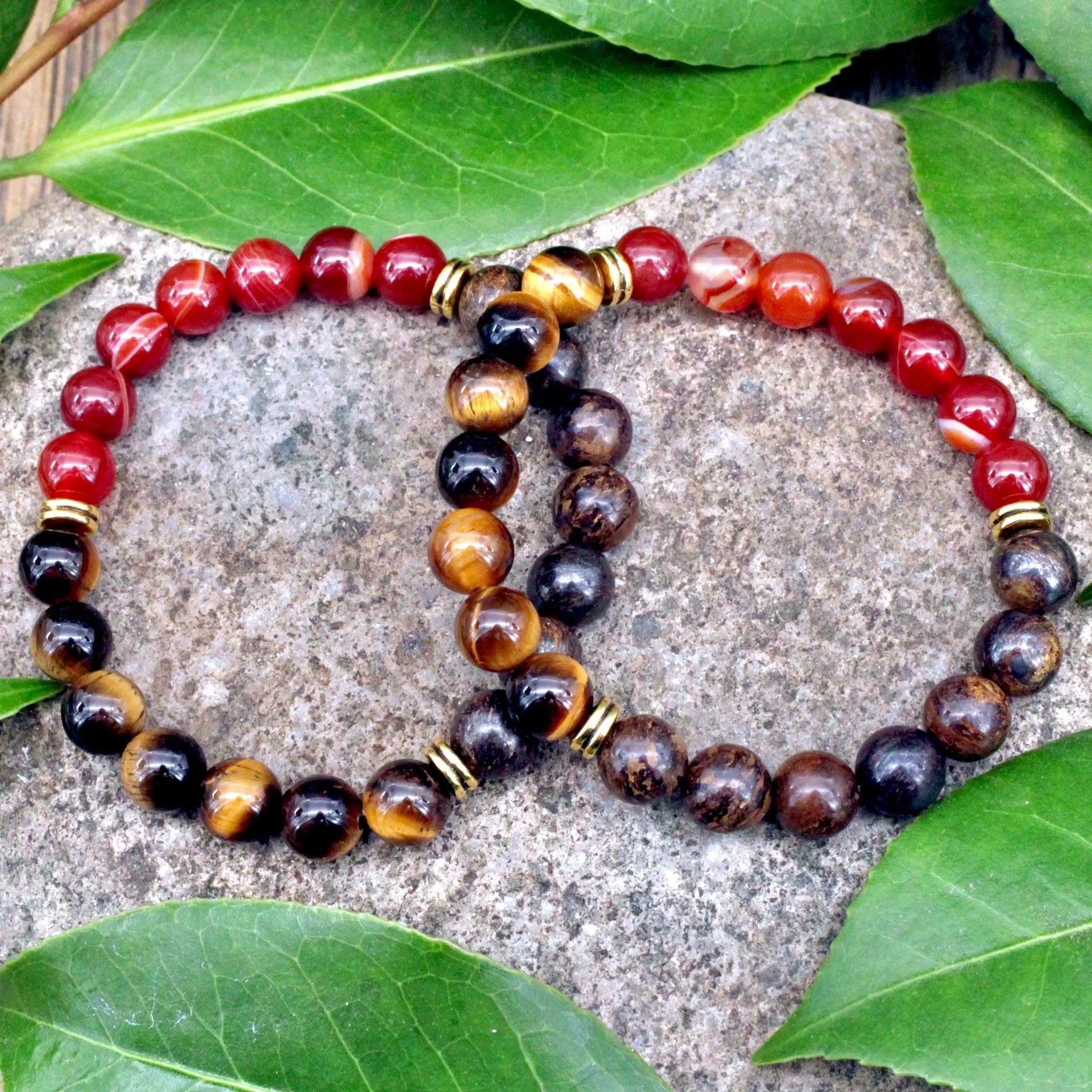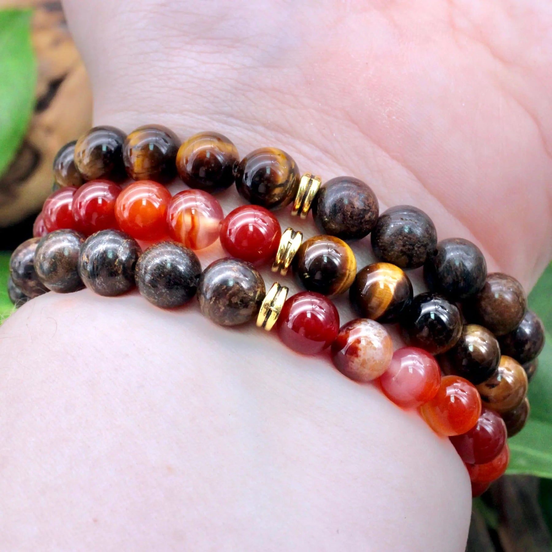 Discover uplifting assistance for depression with this Depression Support Intention Bracelet, featuring Tiger's Eye, Carnelian and Bronzite. Tiger's Eye instills courage, Carnelian boosts motivation, and Bronzite promotes grounding. Embrace their empowering energies and embark on a journey towards inner strength and emotional well-being.