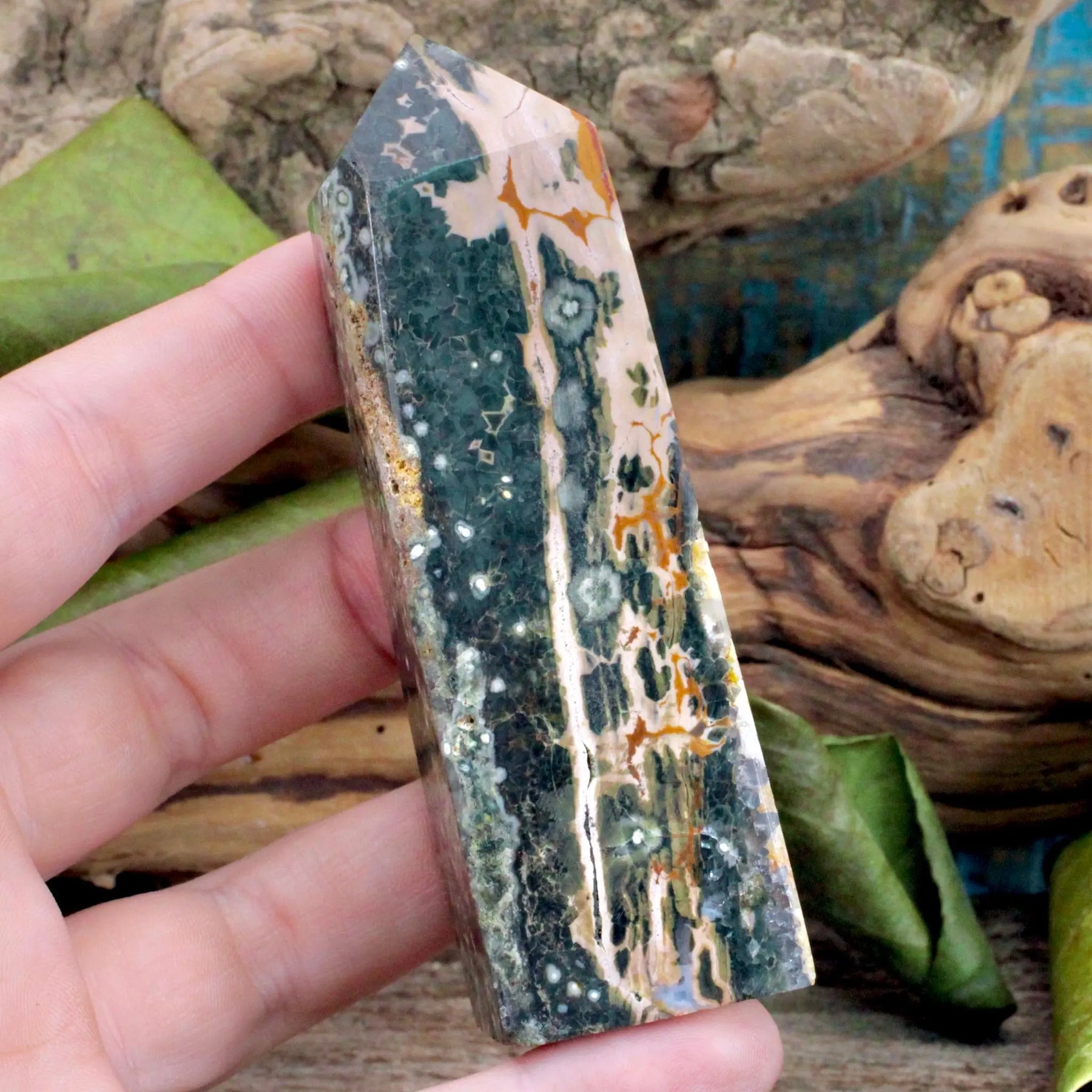 Allow the protective and nurturing energy of this Ocean Jasper tower to surround you as you bask in the wisdom it holds. Let it help you heal unresolved emotions, bringing you peace and happiness as you delve into its beautiful orbicular patterns.