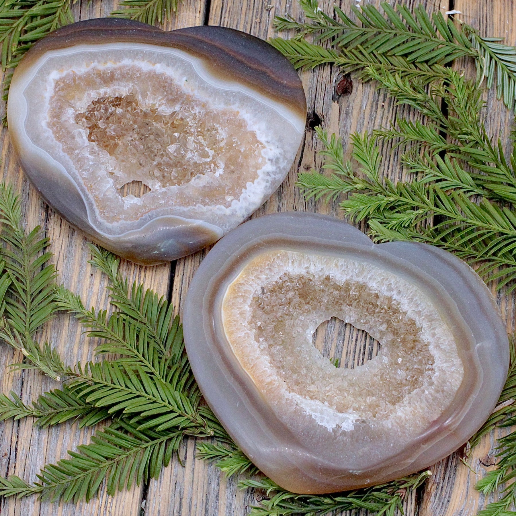 Druzy Agate is a type of Agate in which tiny crystals called druzy have form on the Agate. This stone carries the properties inherent to Agate: deflecting negative energies and empowering balance and self-confidence, leading to a path of personal and spiritual growth. The crystal druzy amplifies the stone's properties, and enhances the agate's properties with quartz vibes: healing, positive energy, and access to higher wisdom. The many druzy points send the beams of energy multi-directionally, to fill a space with the combined energies.