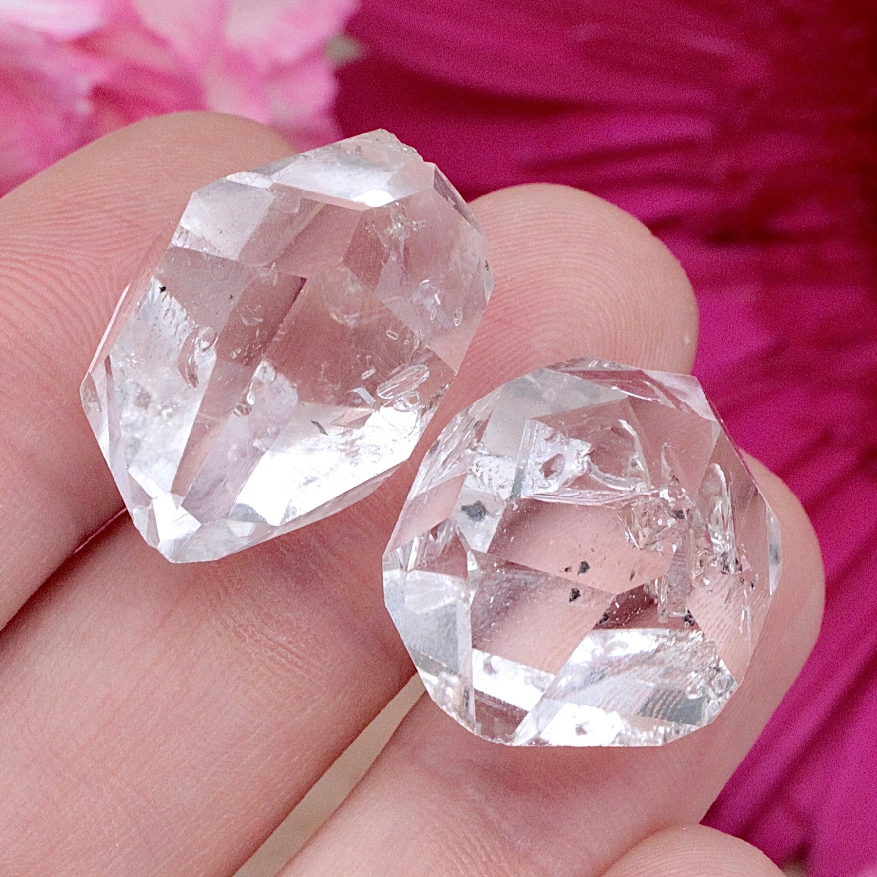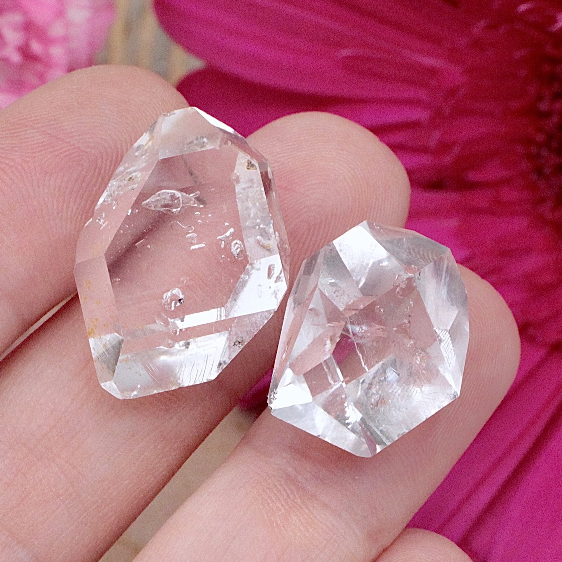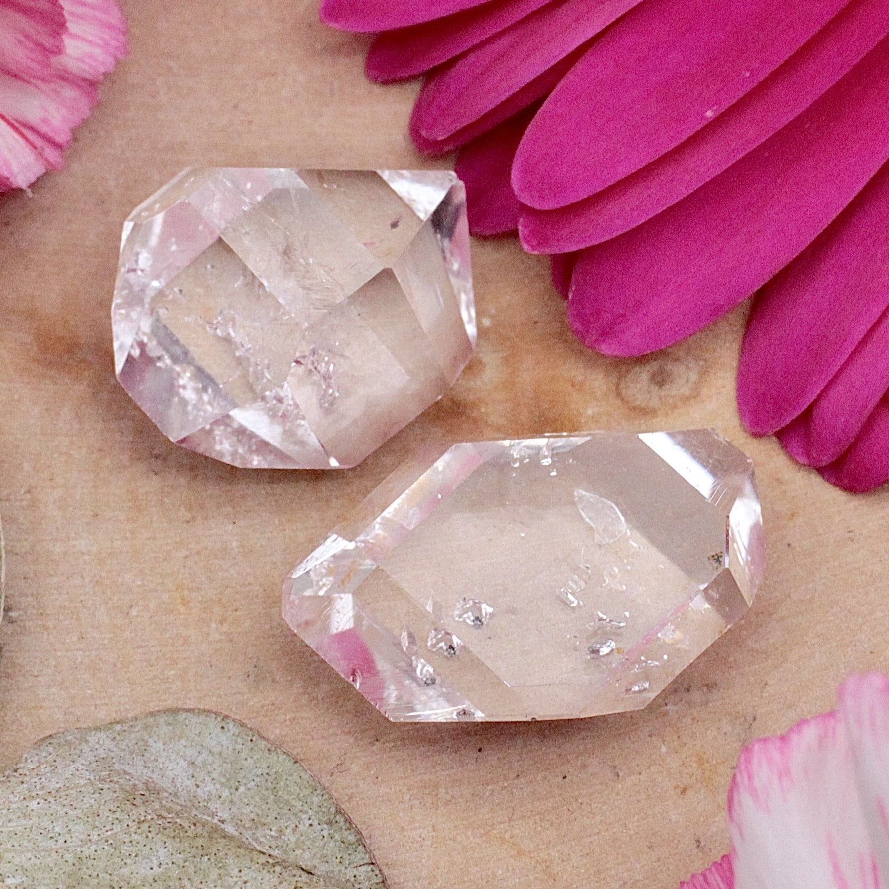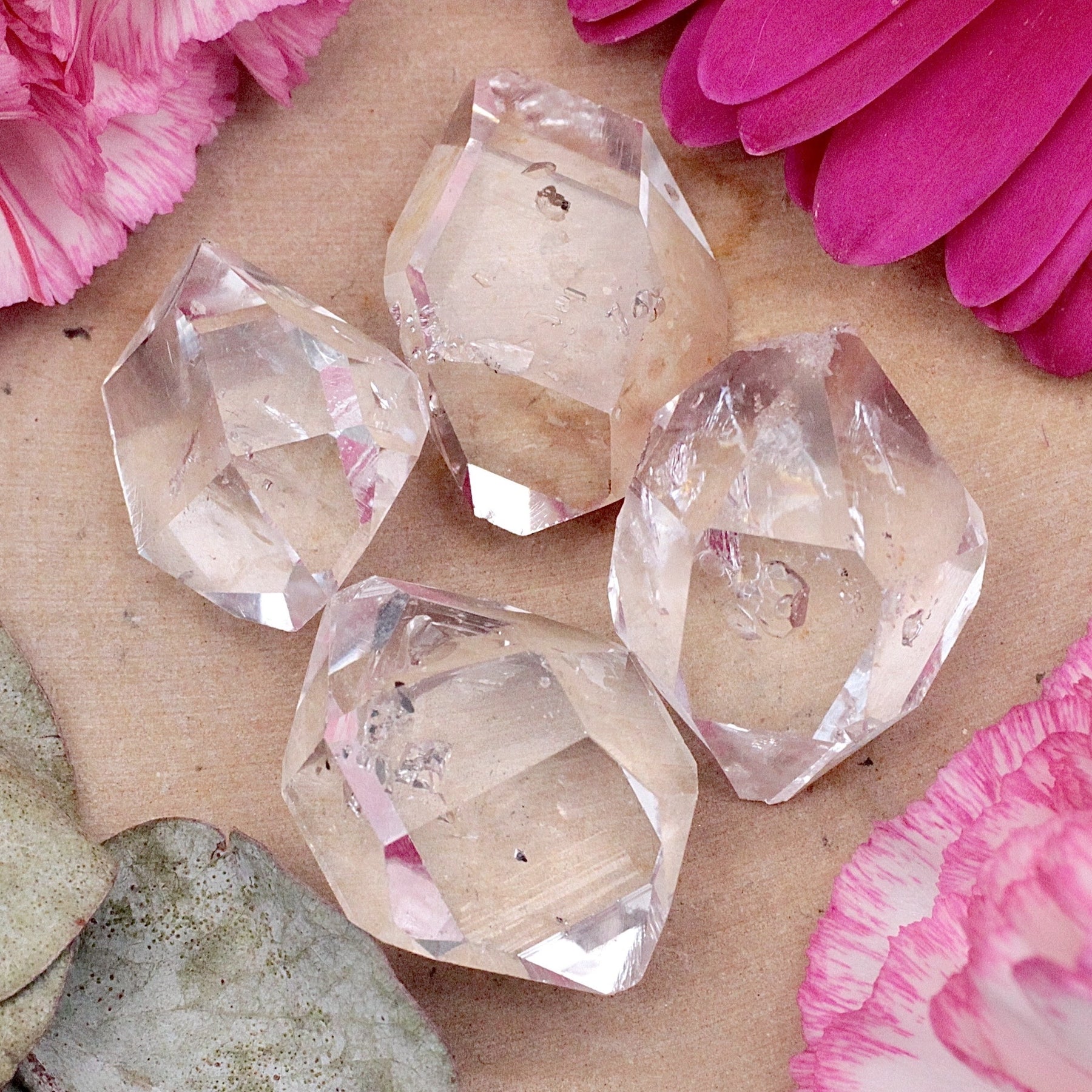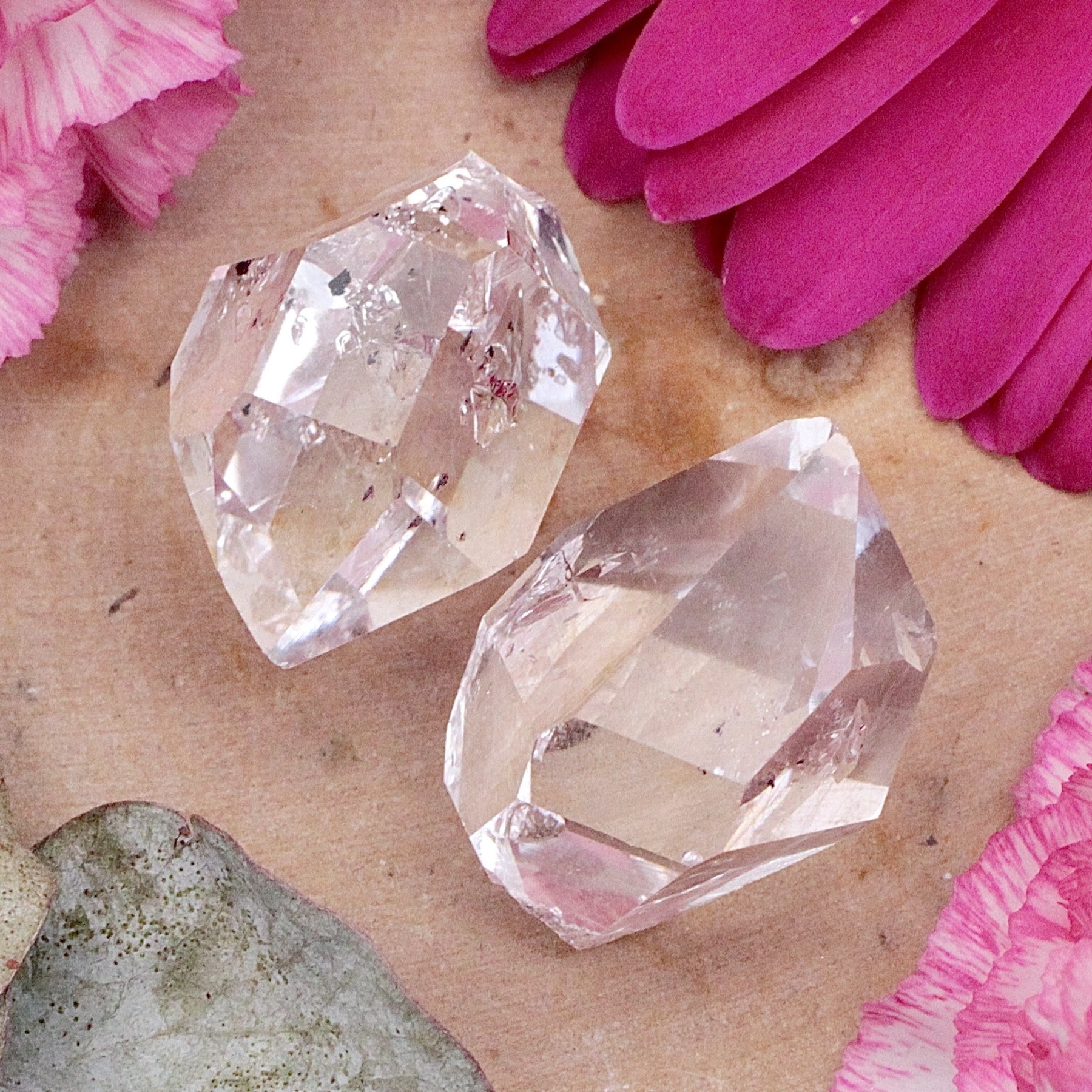 Herkimer Diamonds are actually a high vibration quartz, so named because of their naturally-formed double-terminated shape and because they are mined n the Herkimer County region in New York. They are generally very clear, even when inclusions are present. Energetically, they have the same amplifying, healing and spiritual benefits as Quartz Crystal, elevated and concentrated because of the double-termination. As a stone of attunement, Herkimers enhance interpersonal connections and can keep people close, despite physical distance. They are also useful allies in seeding, remembering and interpreting dreams.