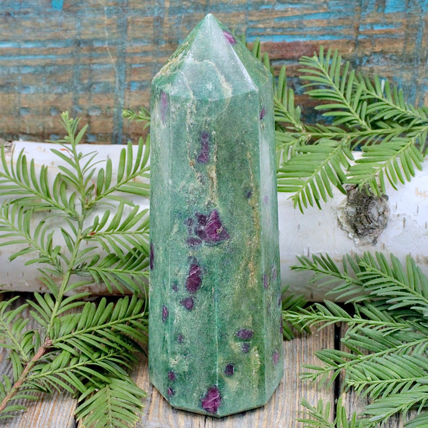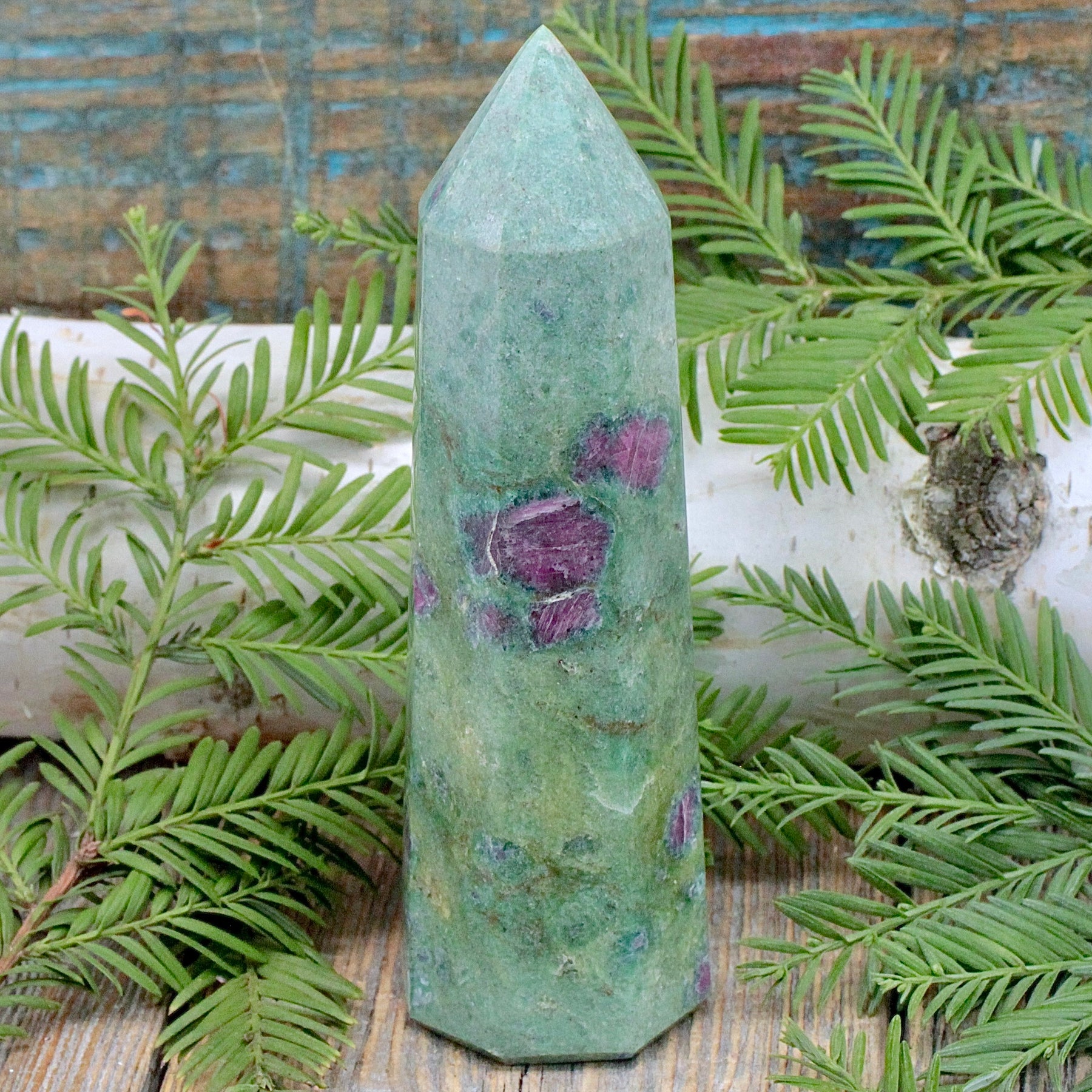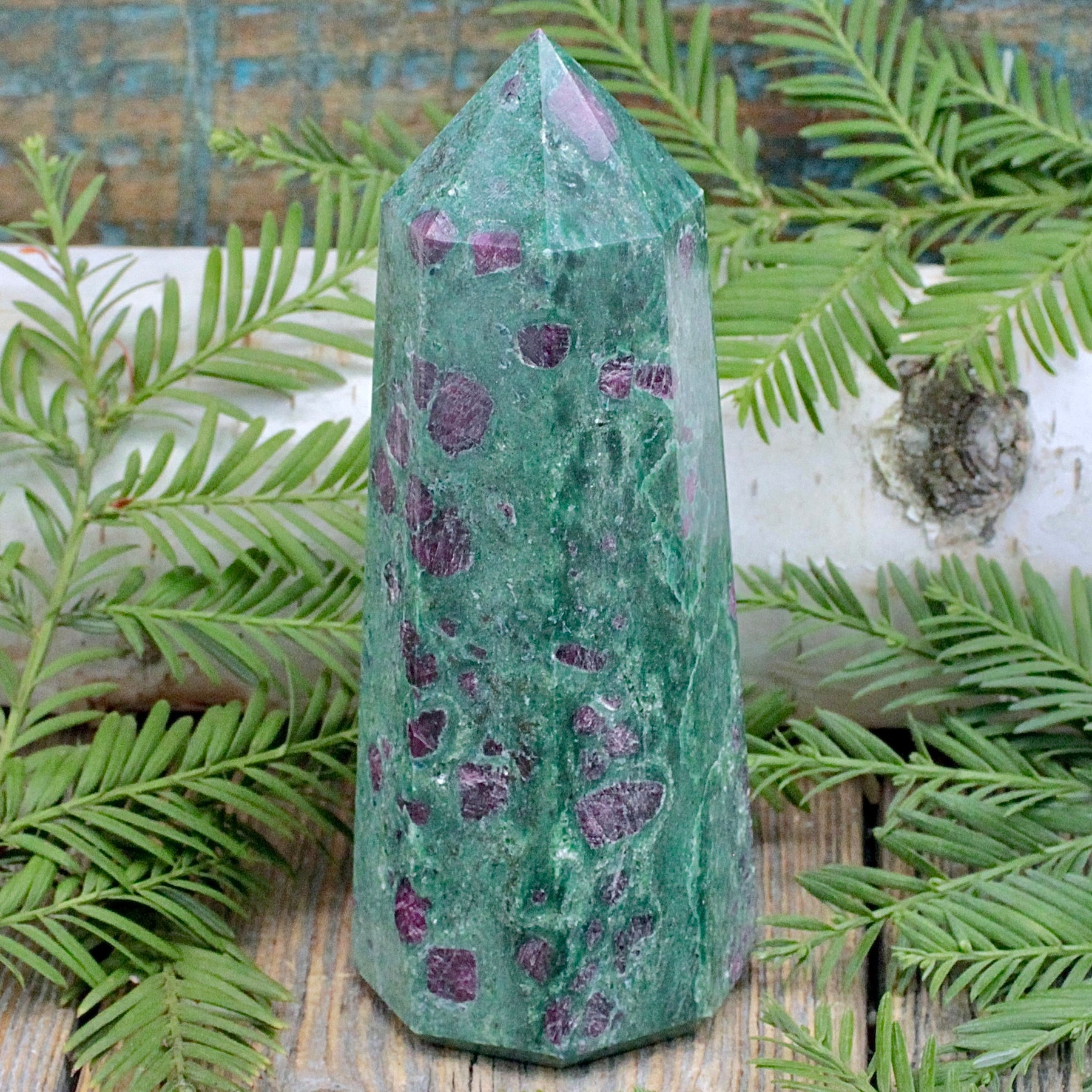 Ruby and Fuchsite create a powerful combination that can offer us emotional strength and support as we reflect inward. It teaches us self worth and motivates us to overcome codependency. It assist in healing from the trauma of past relationships as well as encouraging new healthy relationship.