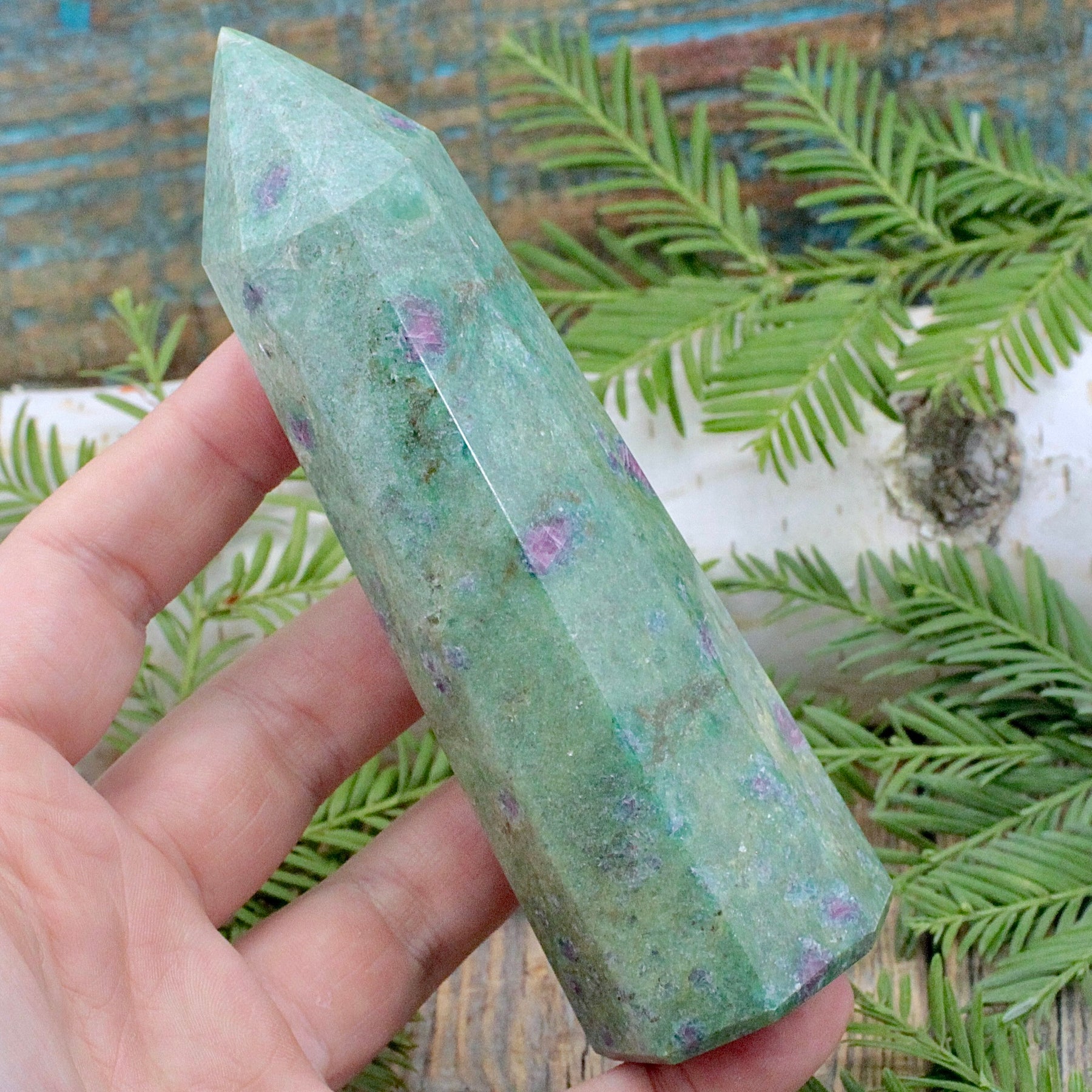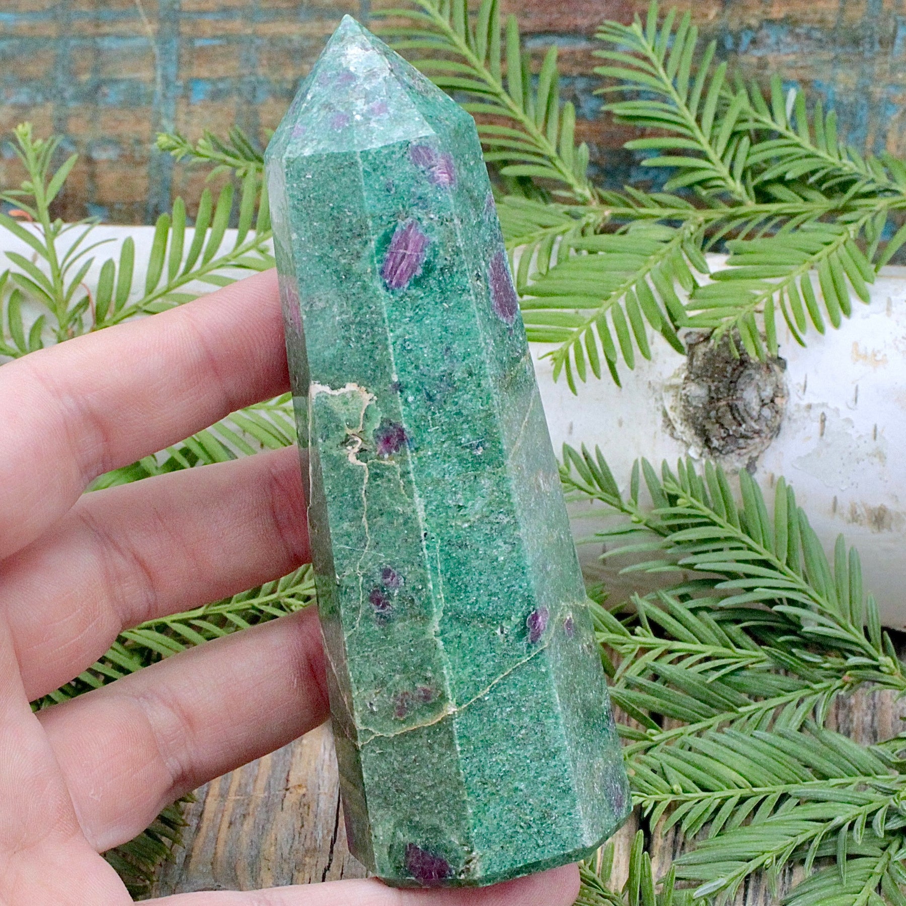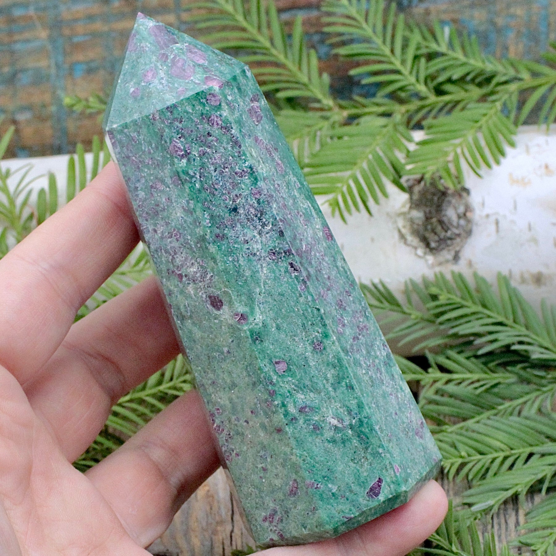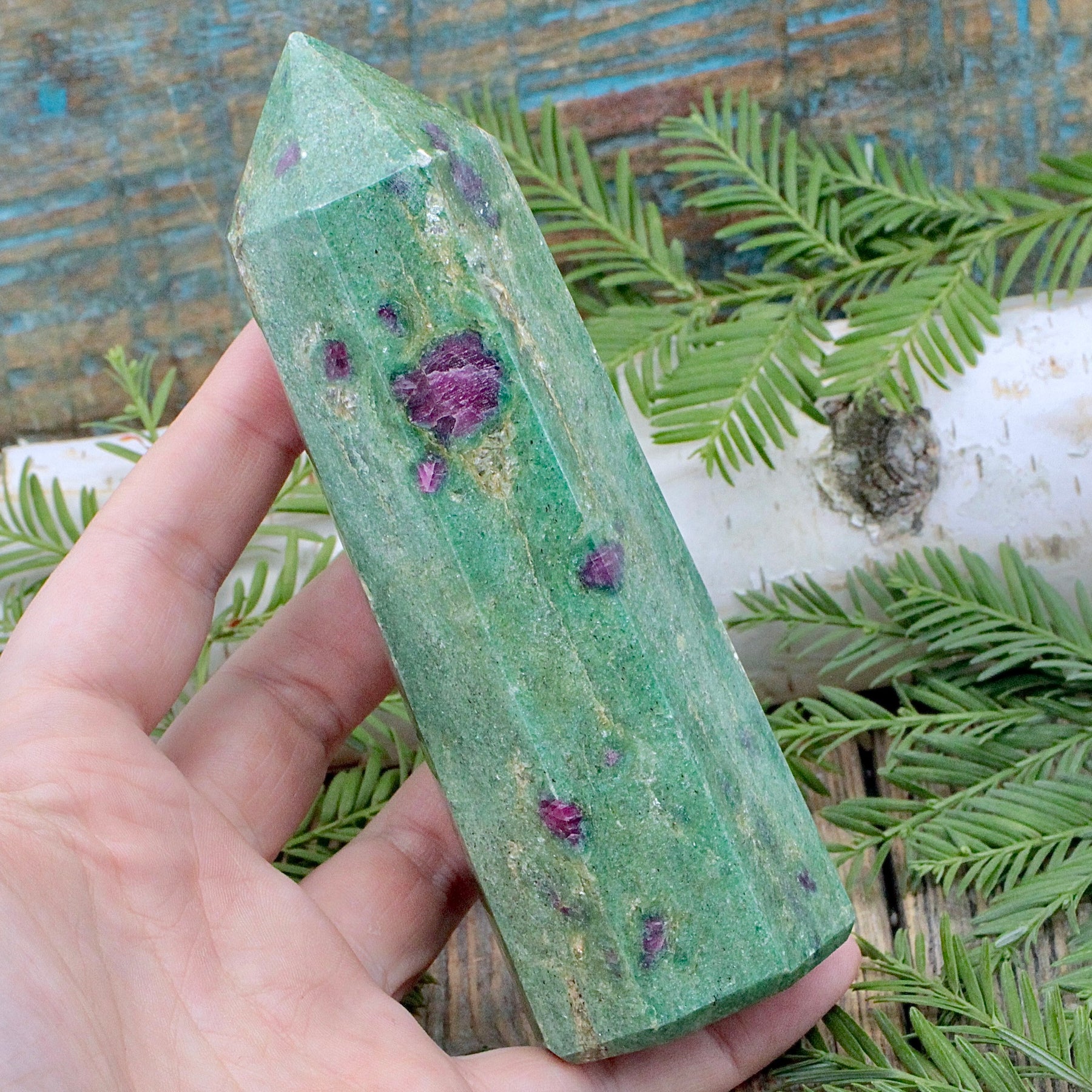 Ruby and Fuchsite create a powerful combination that can offer us emotional strength and support as we reflect inward. It teaches us self worth and motivates us to overcome codependency. It assist in healing from the trauma of past relationships as well as encouraging new healthy relationship.
