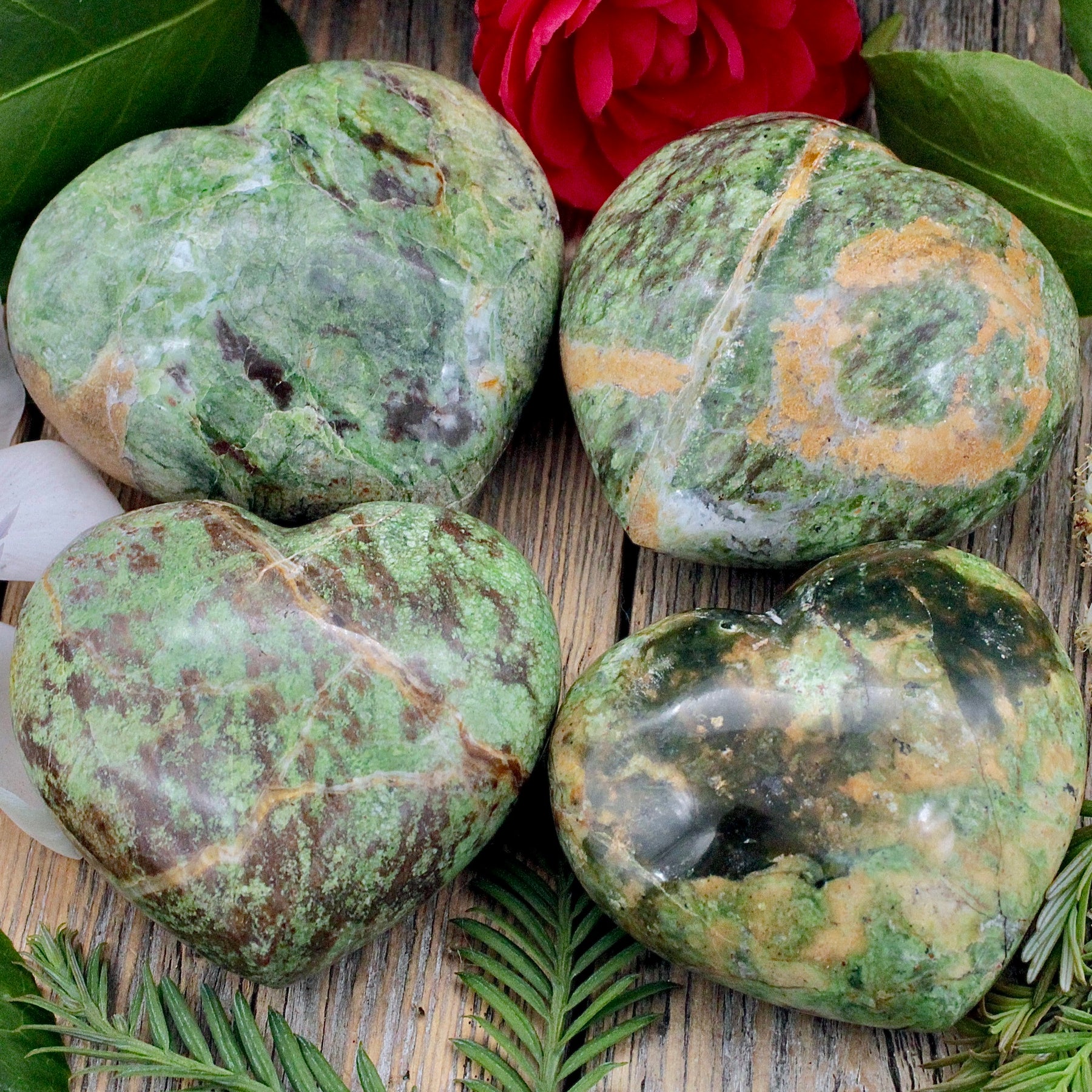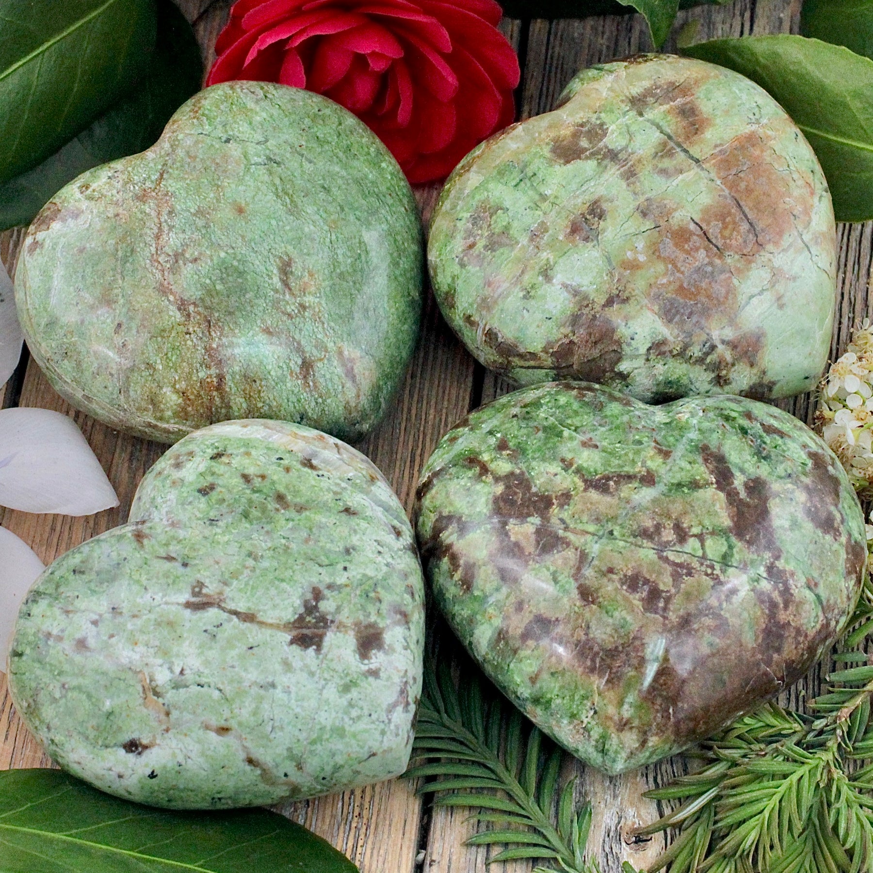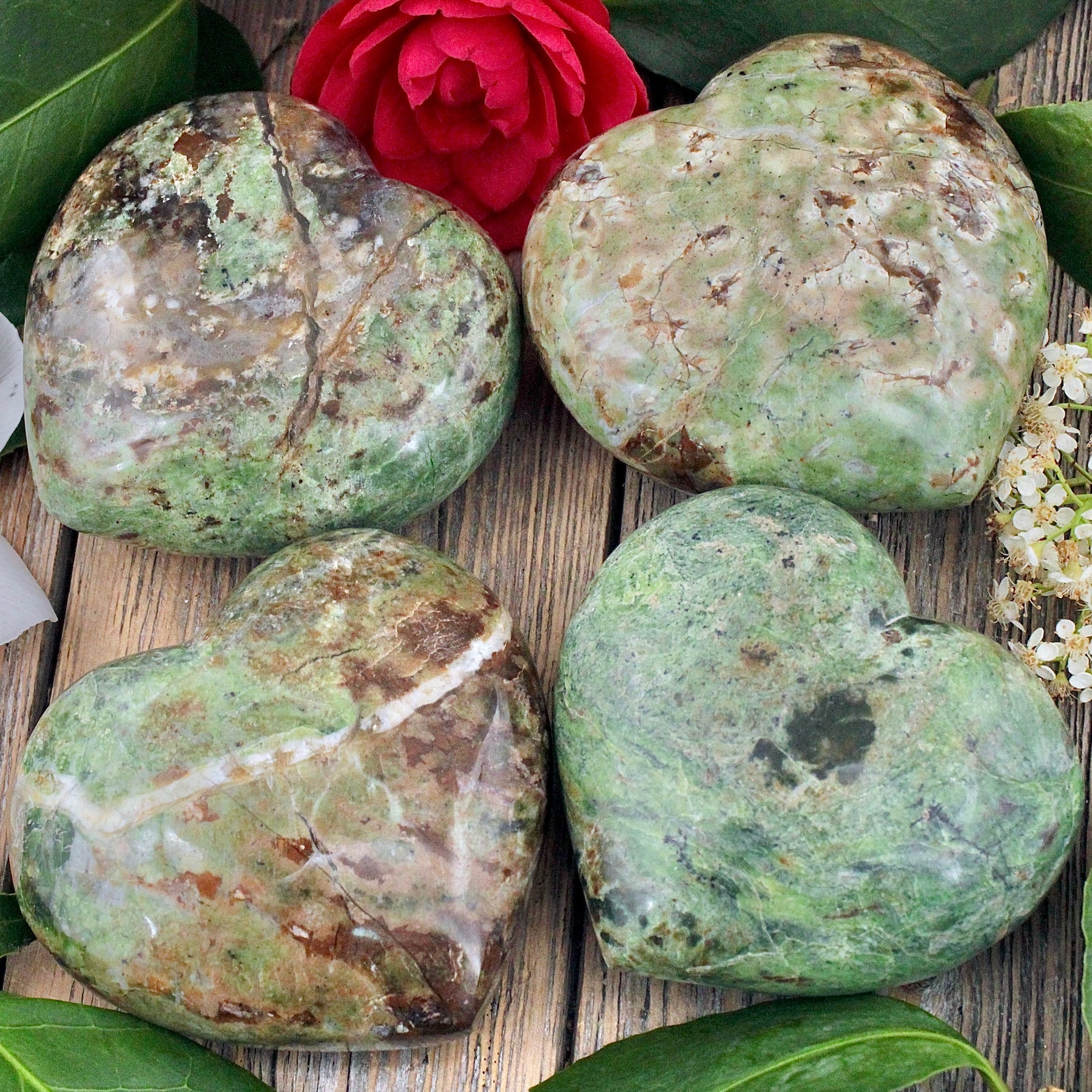 Chrysoprase is a detoxifying stone that cleanses body, mind and soul. Resonating at the level of both the heart and solar plexus chakras, it connects our personal will with our emotions. It opens our heart chakra and brings universal energy into our entire being. Chrysoprase facilitates the release of negative emotion, helping heal our inner child, damaged relationships, and broken hearts. It supports us in manifesting our heart's desire.