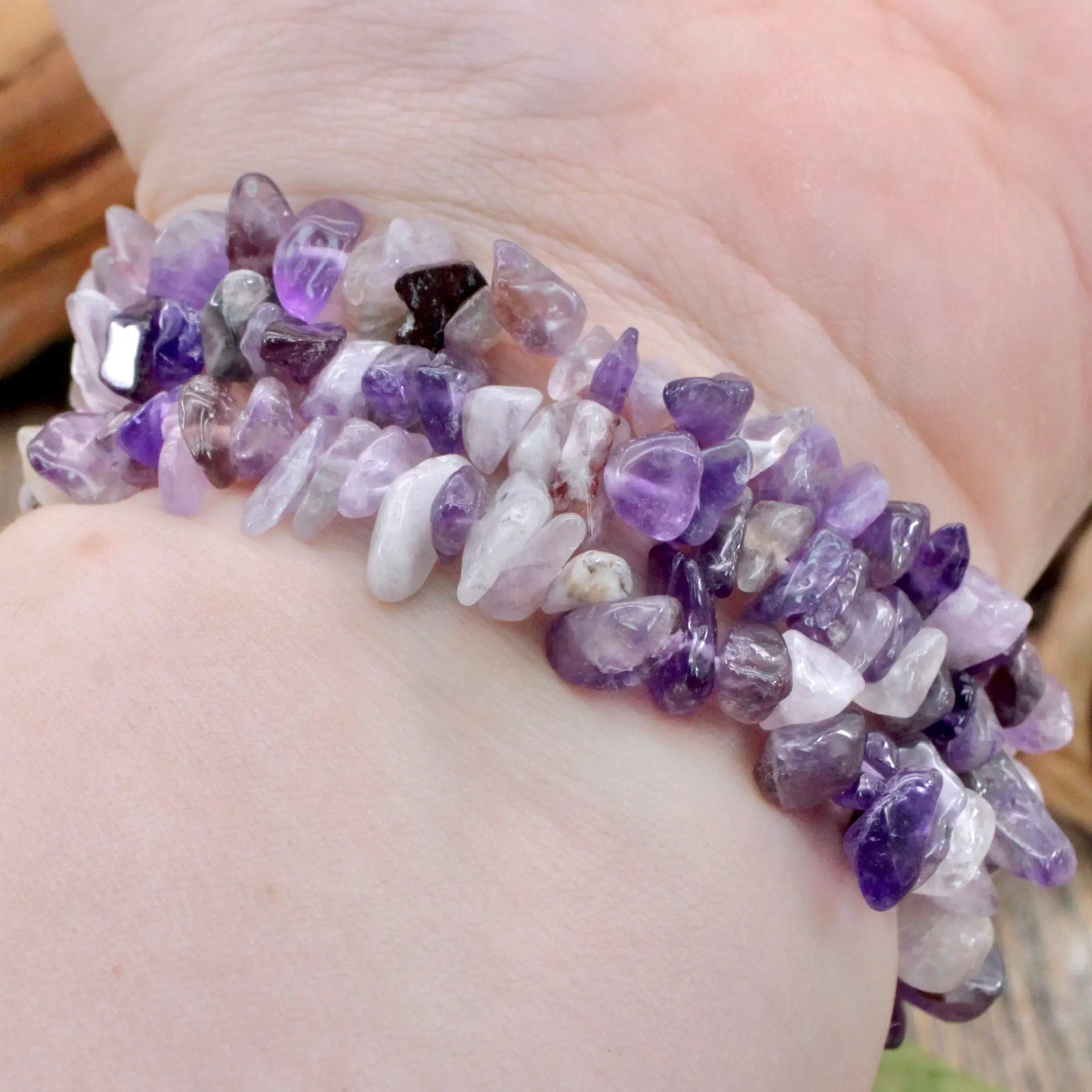 Make the best decisions with this Amethyst chip bracelet. Amethyst helps us to overcome obstacles and see things more clearly. It also connects us to the spiritual realm so that we are always looked after.