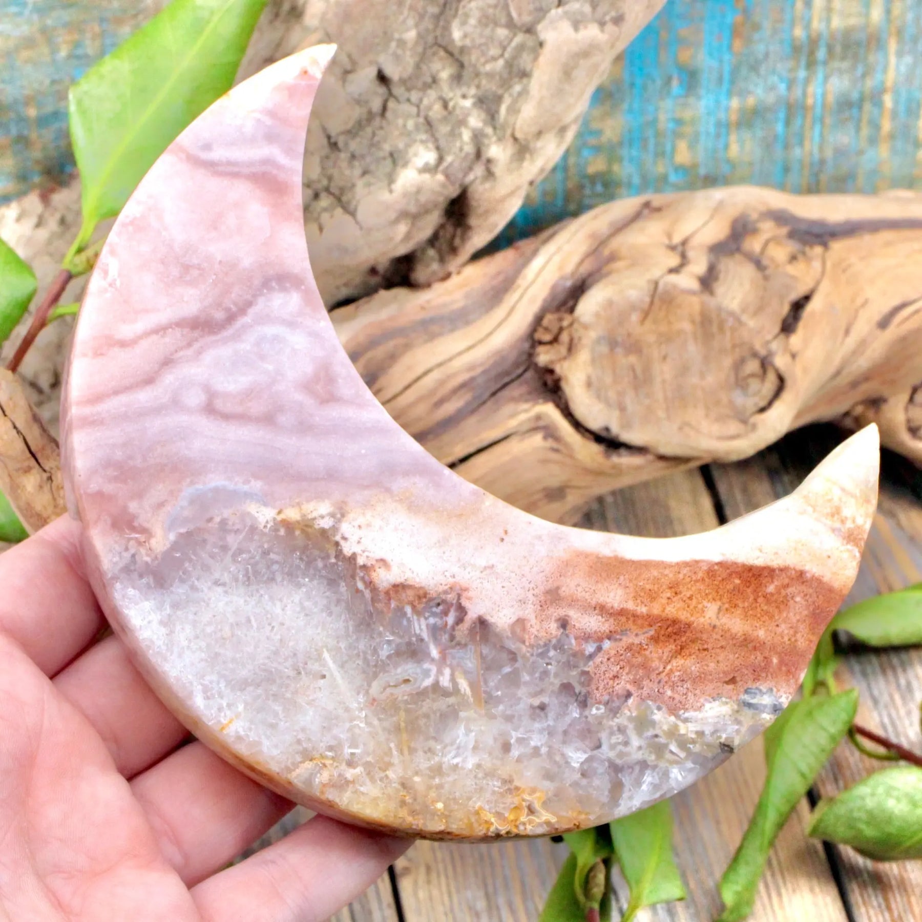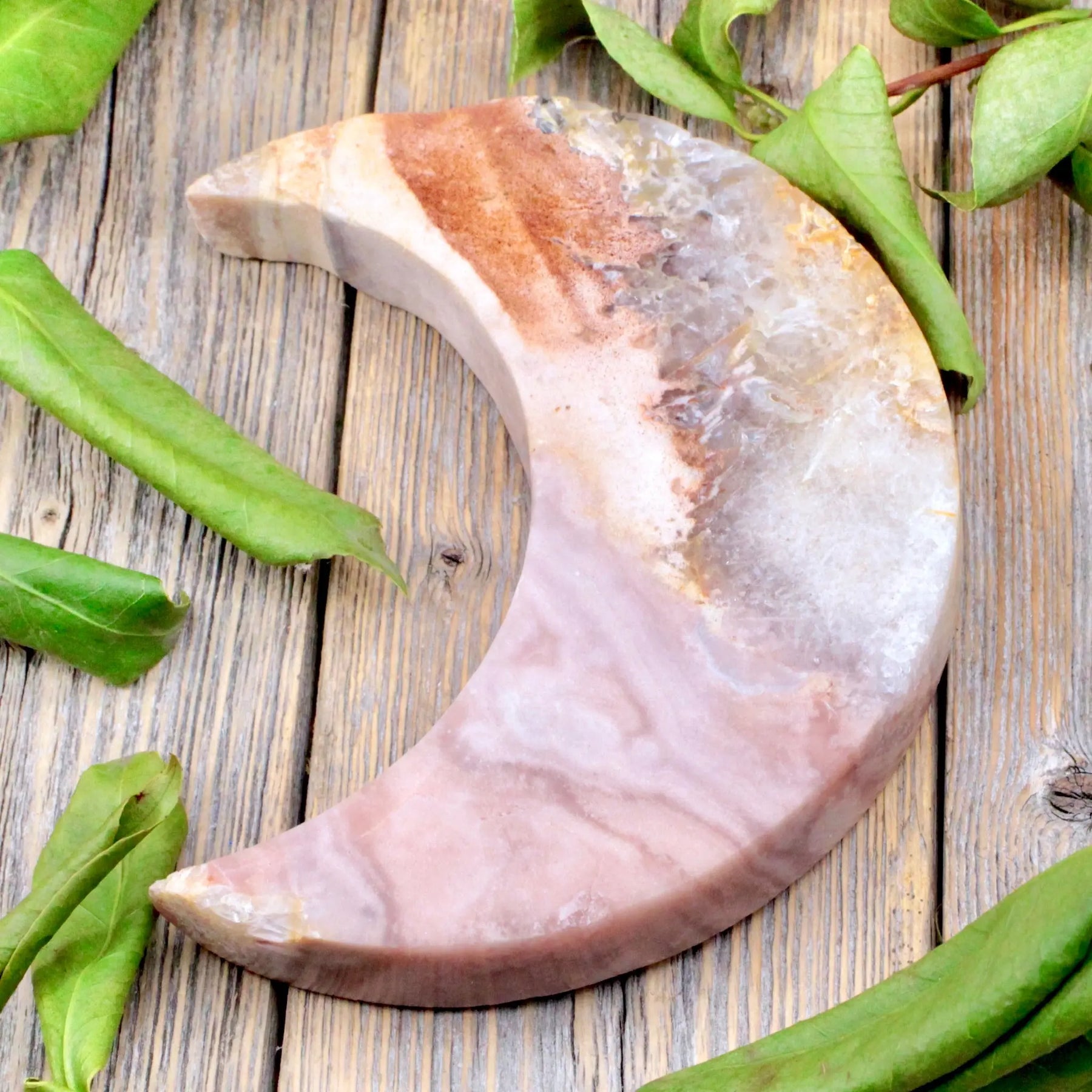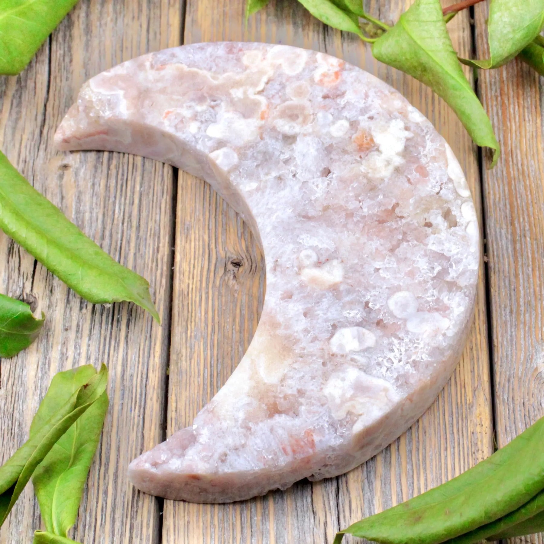 Overcome your obstacles with this Pink Amethyst moon. Pink Amethyst is lovely for protection against negative energy and achieving goals. It can also help elevate your meditation.