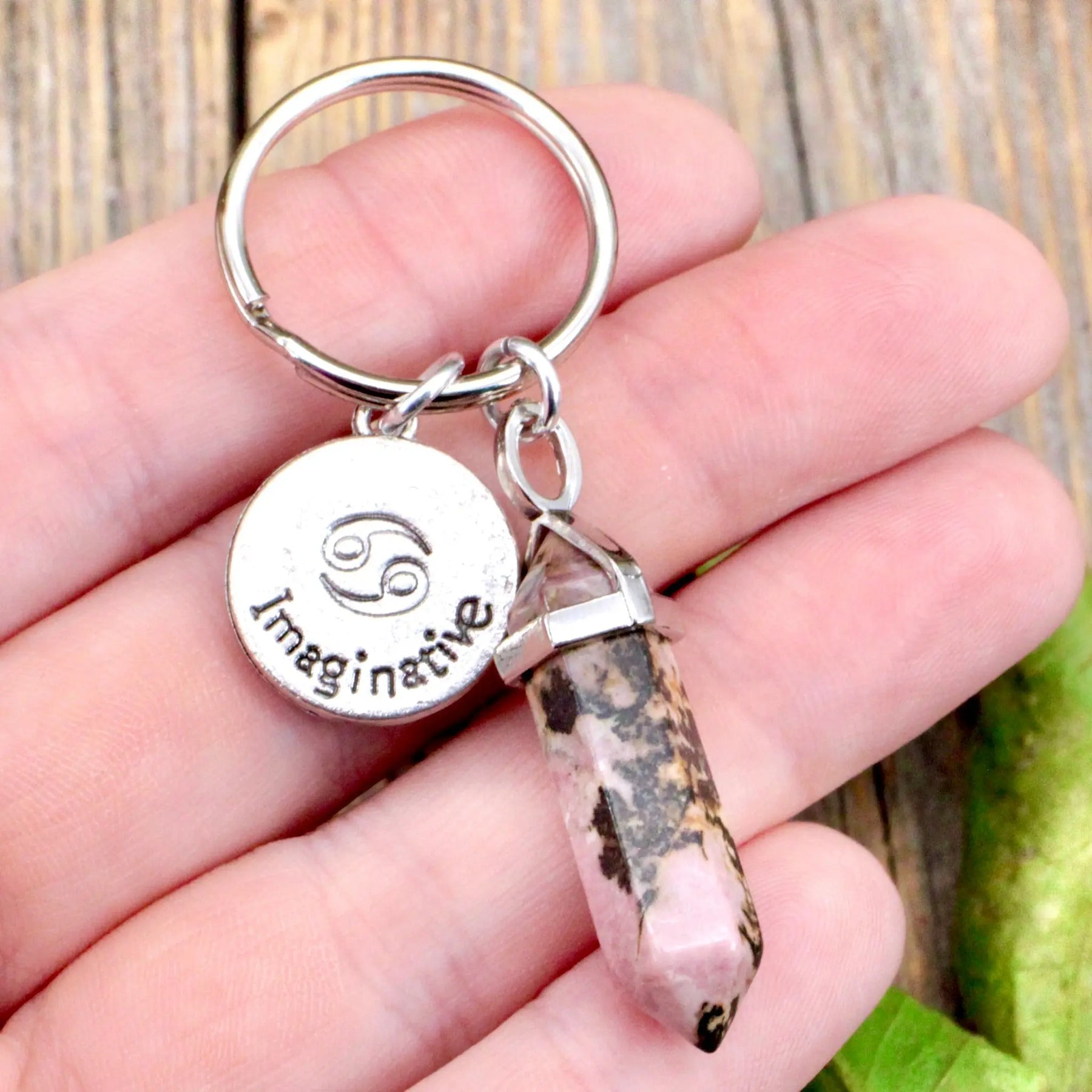 Rhodonite Zodiac Keychain - Cancer