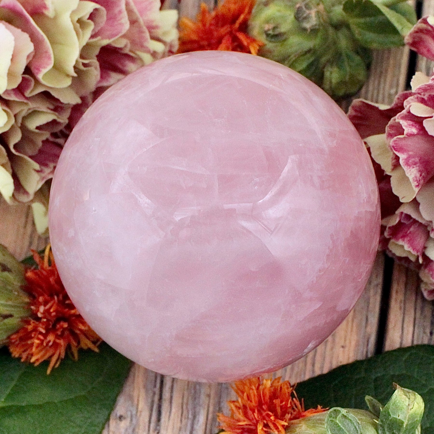 Welcome the invigorating breeze of love and harmony with this Rose Quartz Sphere. Harnessing the energy of Rose Quartz, it aids in heart and relationship healing. This delightful heart will enhance the ambiance of your home while radiating its soothing energy.