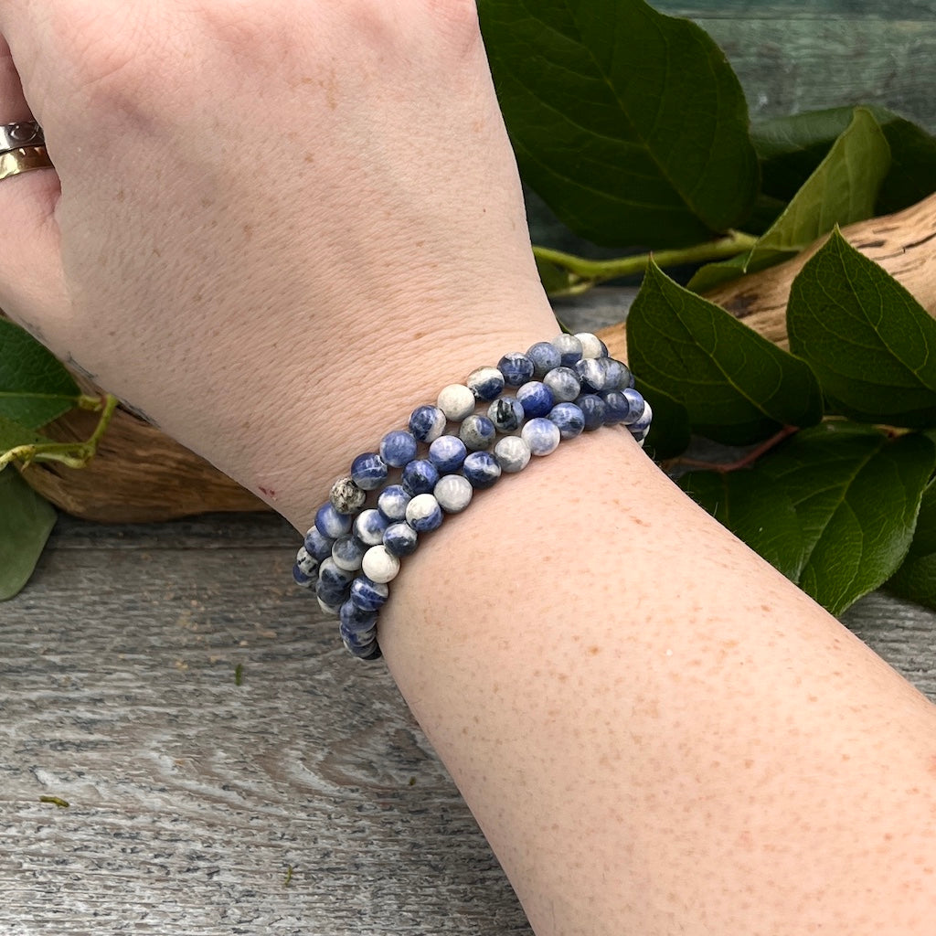 Speak your truth confidently with the help of this Sodalite Bracelet. Now available in a dainty 6mm size, this denim blue bracelet enhances self esteem.