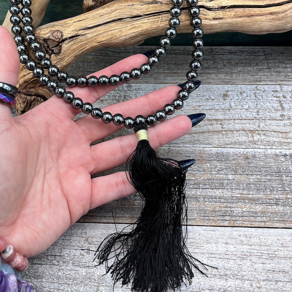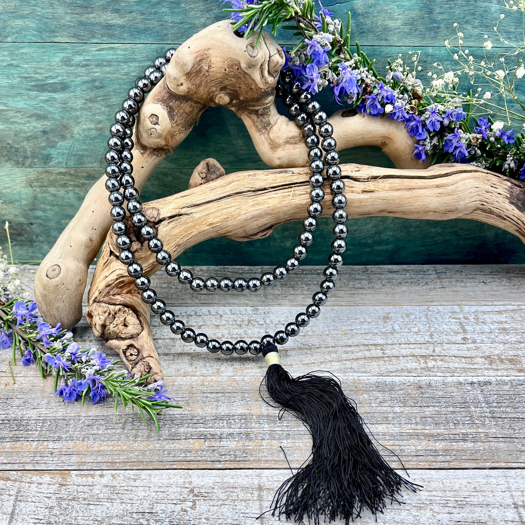 Sooth frazzled nerves with this Hematite Mala. Made with 8mm beads, this piece has a bit of weight to it, making it feel like an energetic hug that brings in calming vibes.
