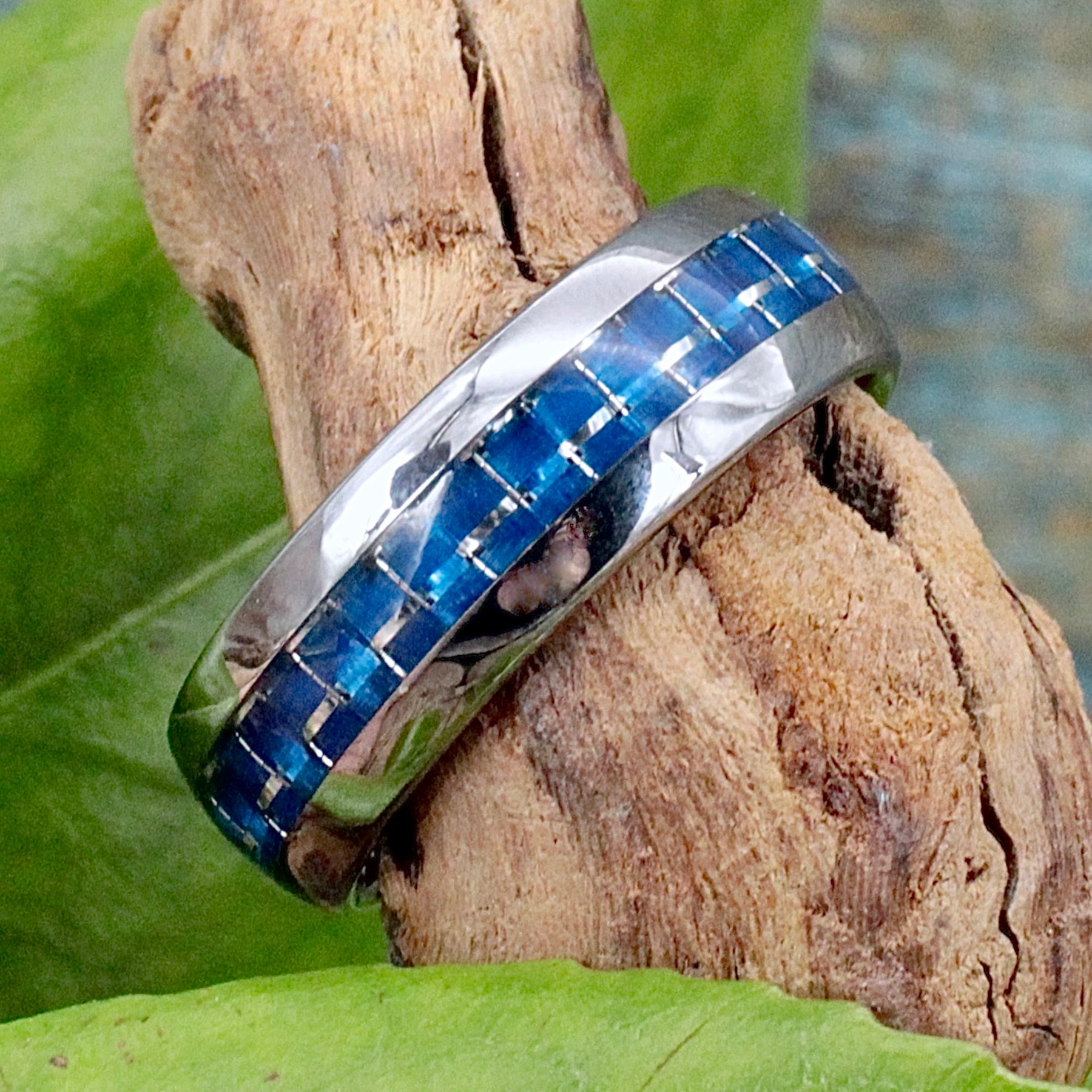 Men's Tungsten Ring with Blue Mosaic Inlay