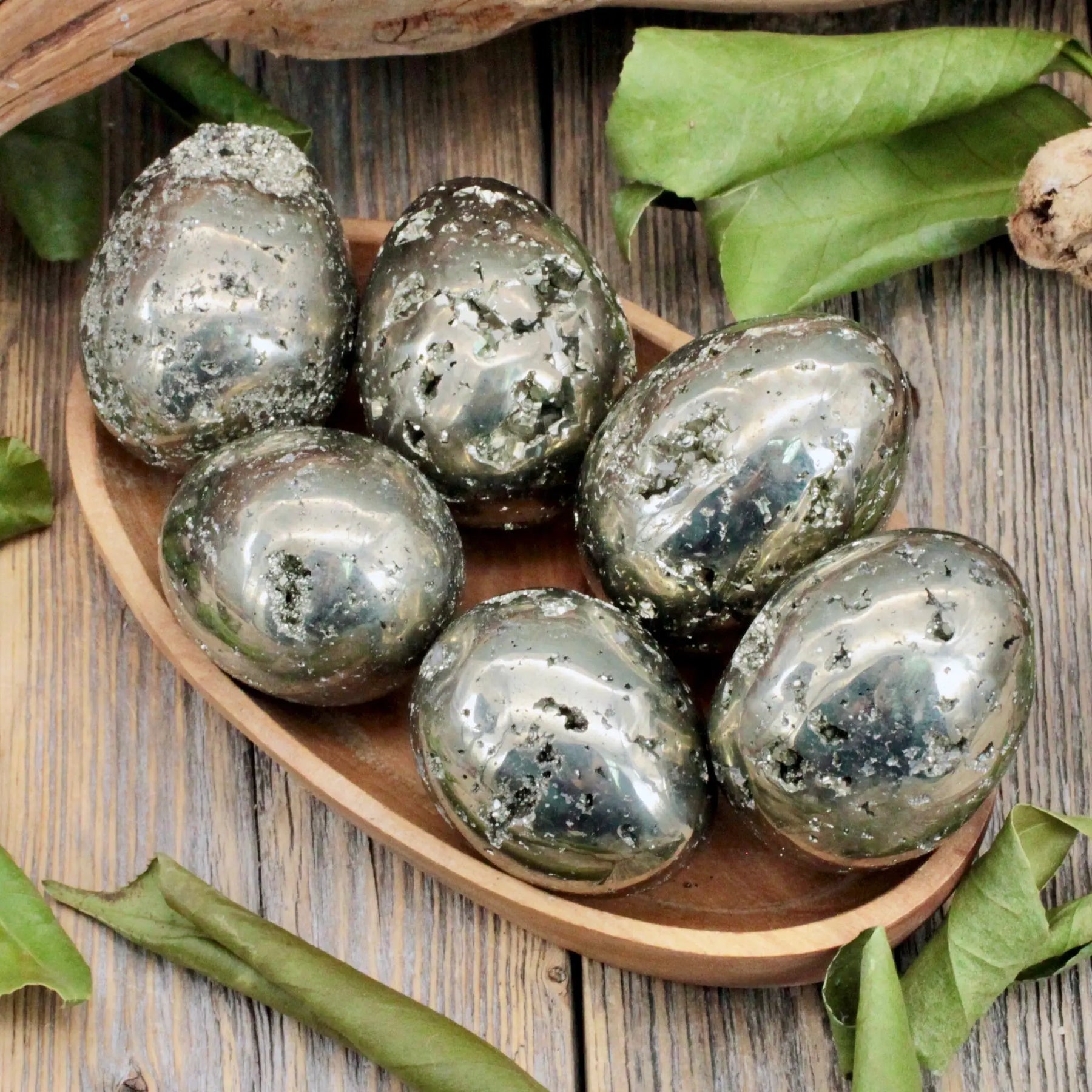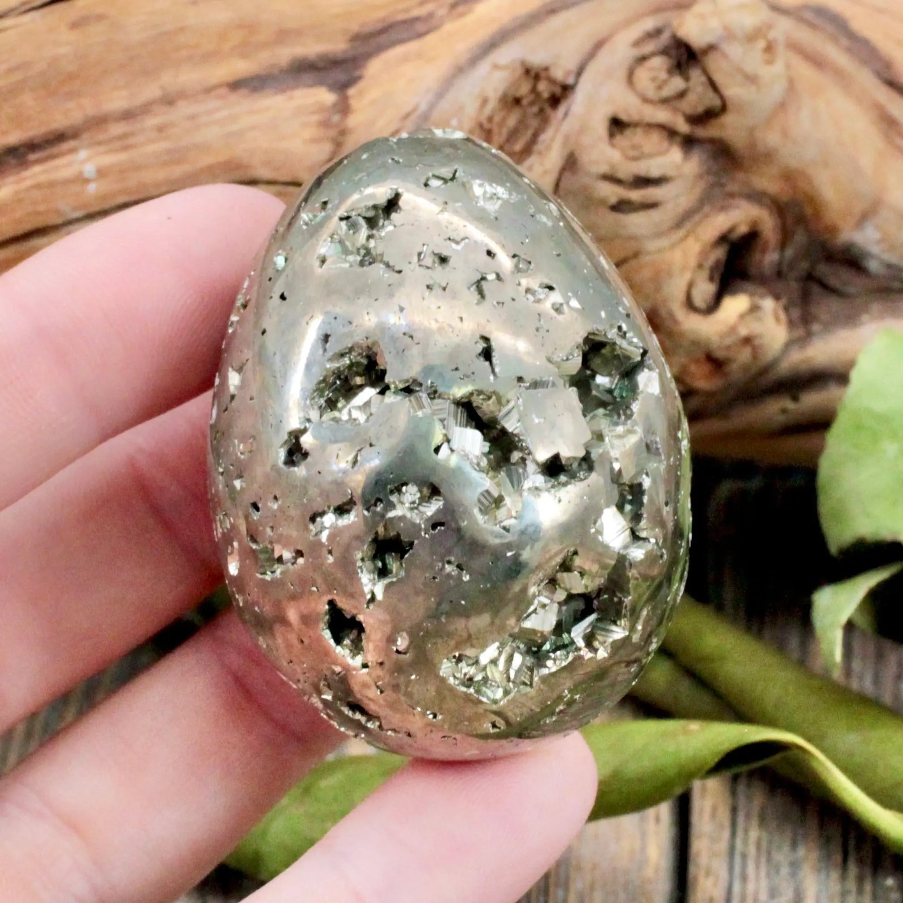 Help manifest your intentions with this Pyrite egg. Pyrite works by enhancing your confidence, willpower, and motivation, which helps you take action towards your goals. It is also believed to attract abundance, prosperity, and success, which can aid in manifestation.