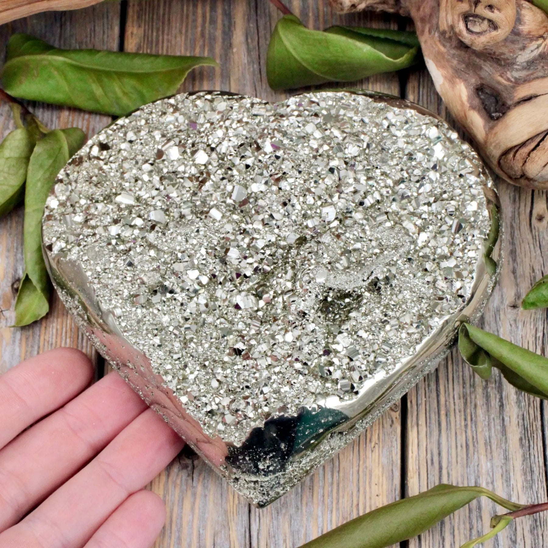 Exude strength and vitality with this Pyrite heart. Great for self-confidence and manifesting your goals, pyrite is a stone that allows your best and most vibrant self shine through.