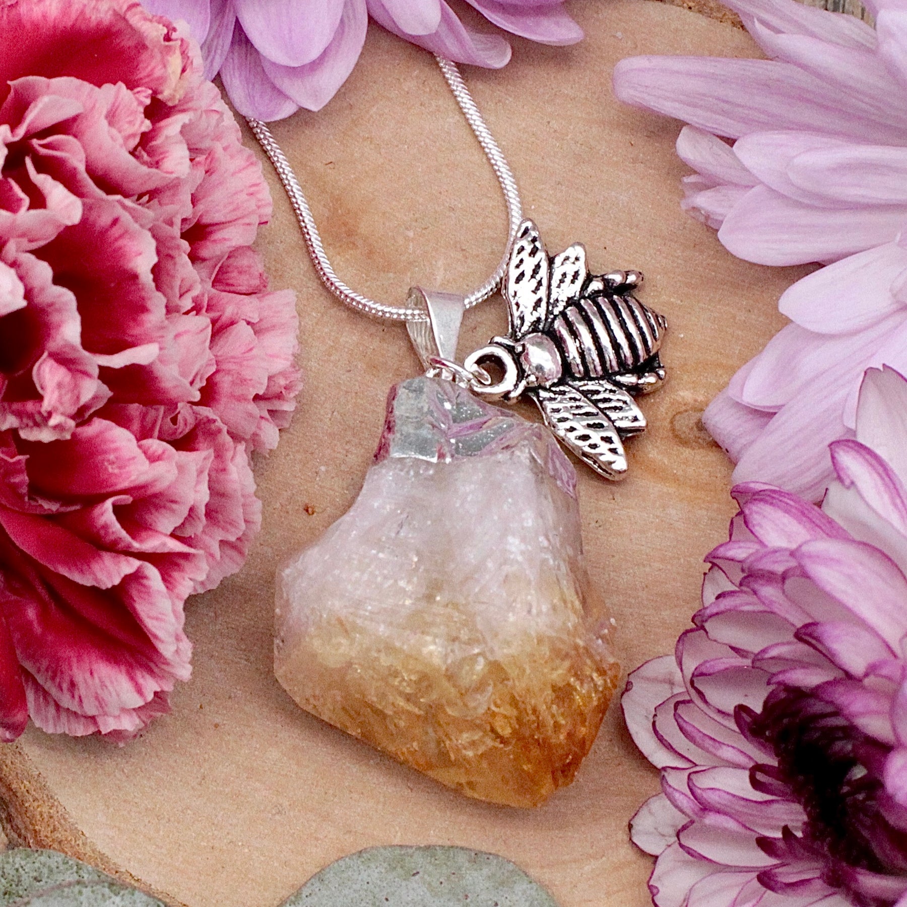 Citrine Rough Point Pendant with Bee Charm
