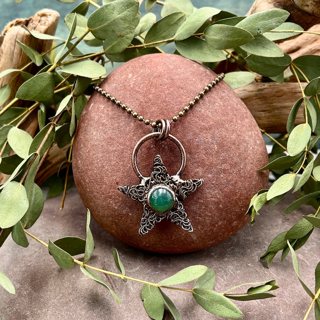 Invite abundance into your life with this Green Aventurine Star Necklace. Done in a beautiful bronze finish, this necklace is a great gift for the star gazer in your life!