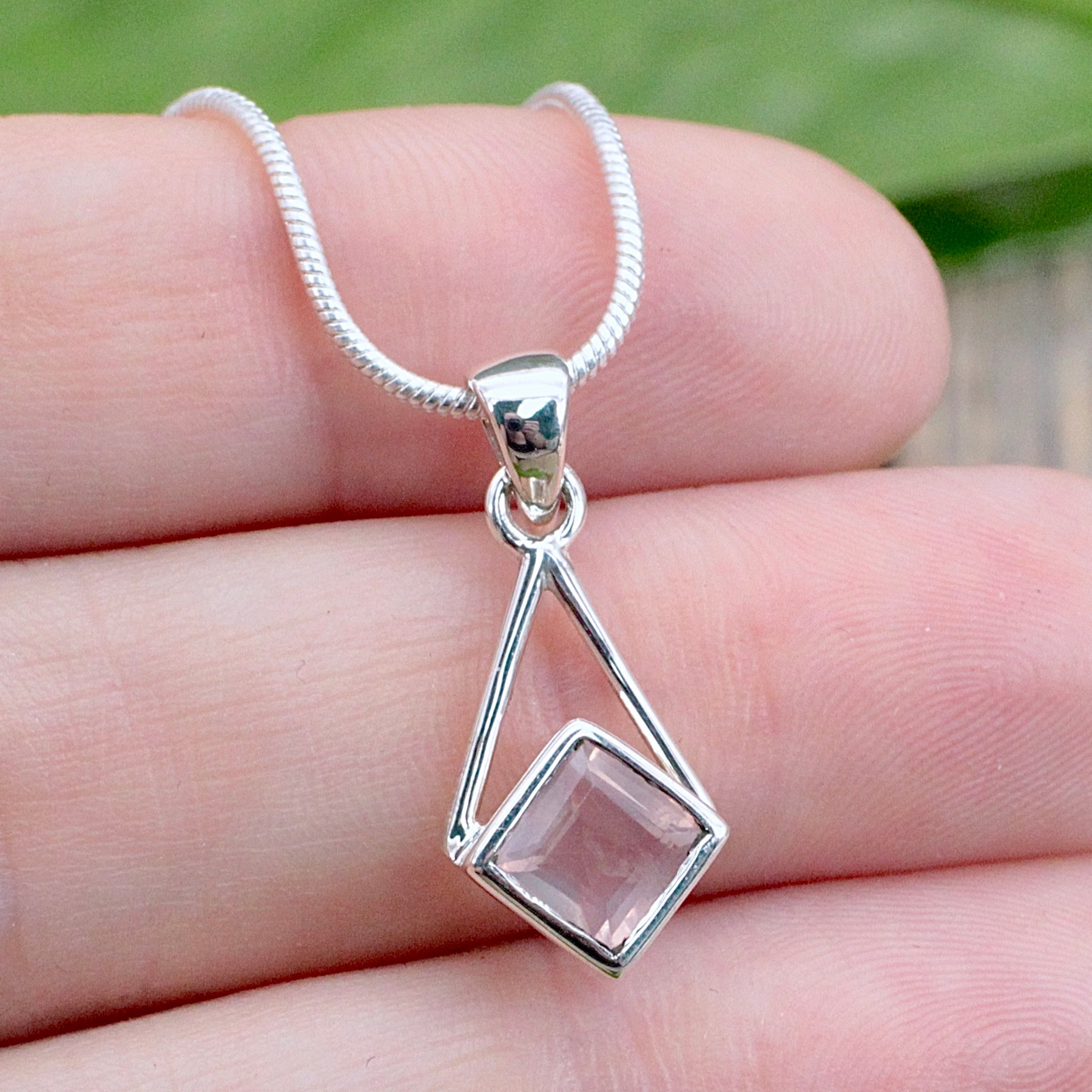 Embrace the enchanting power of love with this Rose Quartz Diamond-Shaped Pendant. Radiating a gentle and affectionate vibration, Rose Quartz infuses any space it graces with a delightful aura. Experience the tender embrace of love wherever you venture by wearing this pendant, allowing its warm energy to envelop and uplift you.