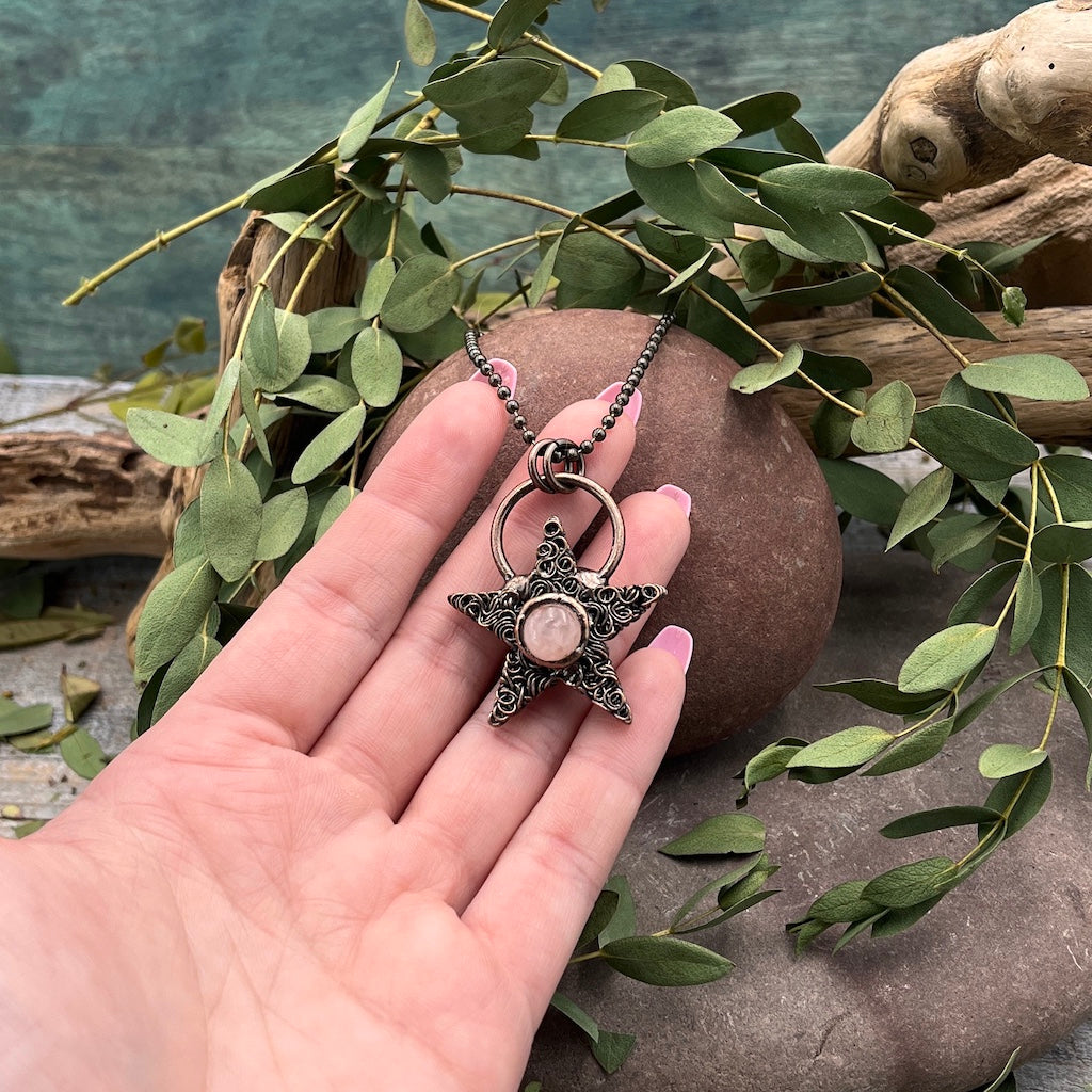Invite harmony into your life with this Rose Quartz Star Necklace. Done in a beautiful bronze finish, this necklace is a great gift for the star gazer in your life!