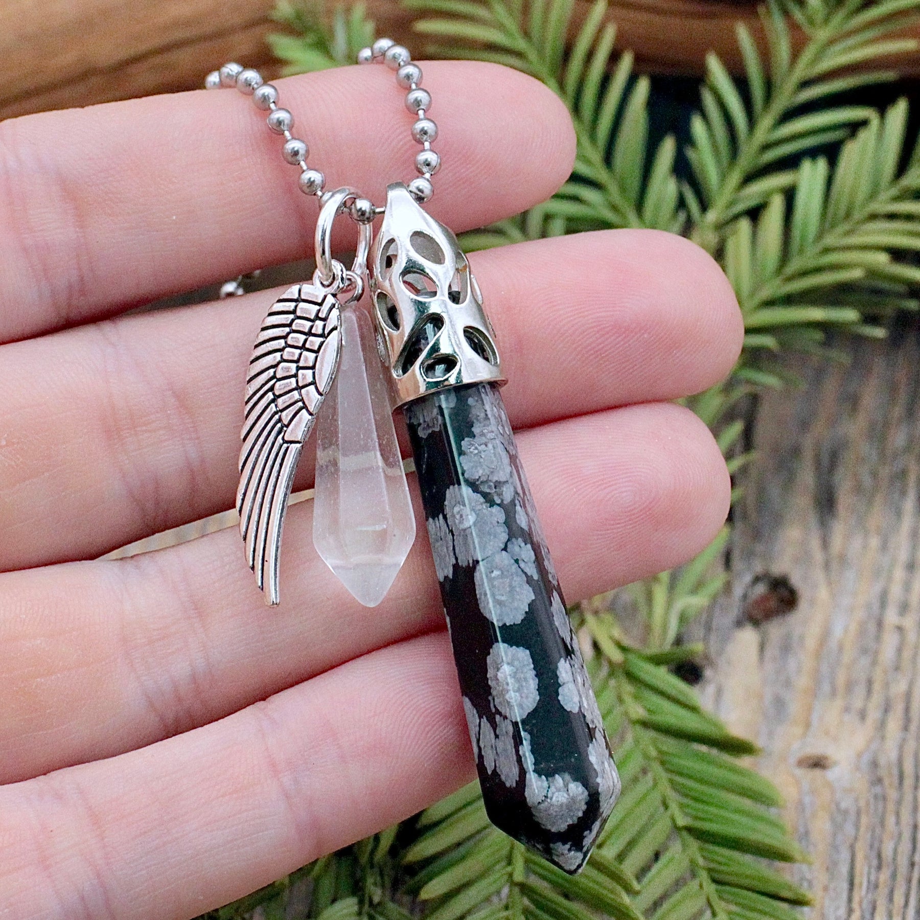 Snowflake Obsidian Guardian Stones Necklace - Large Point