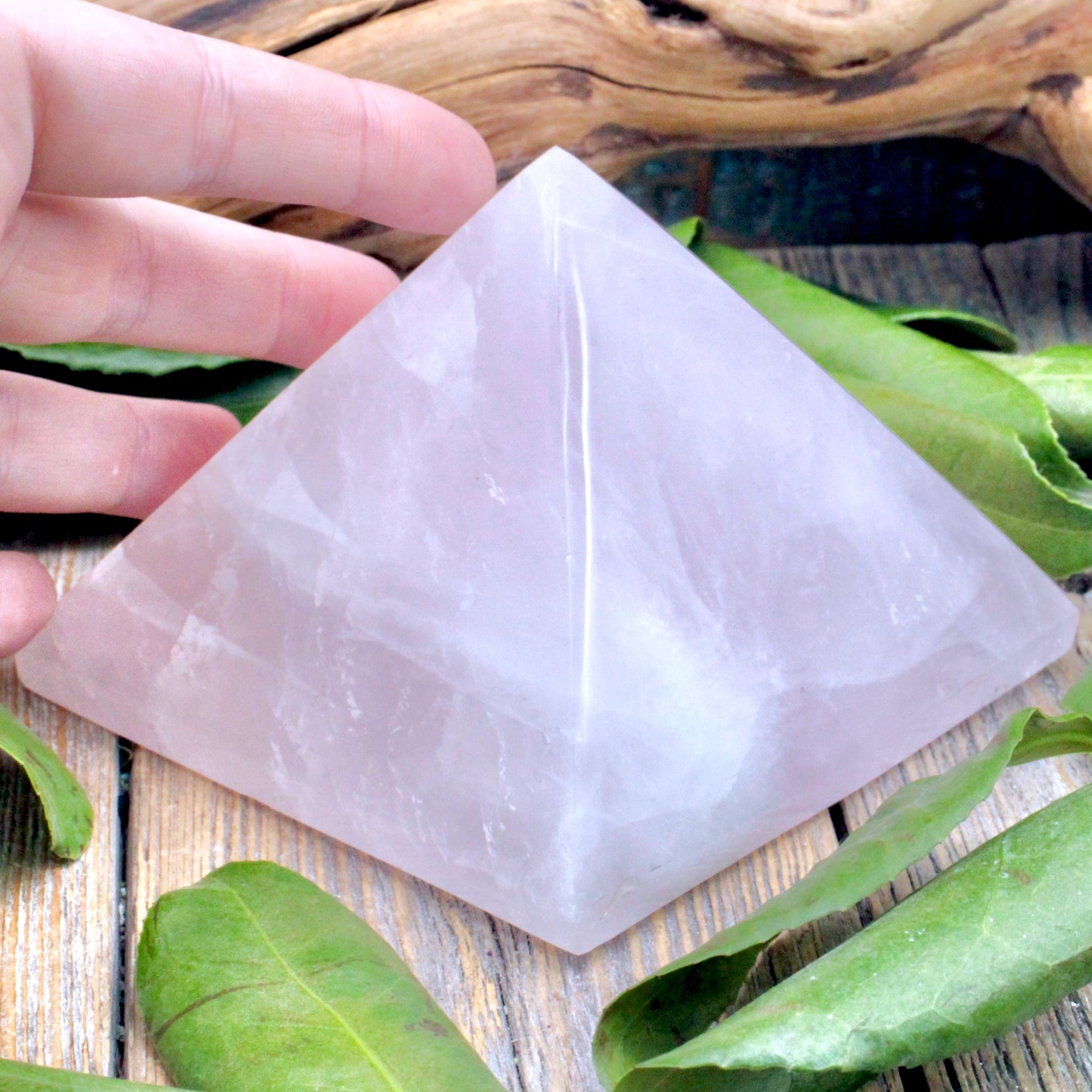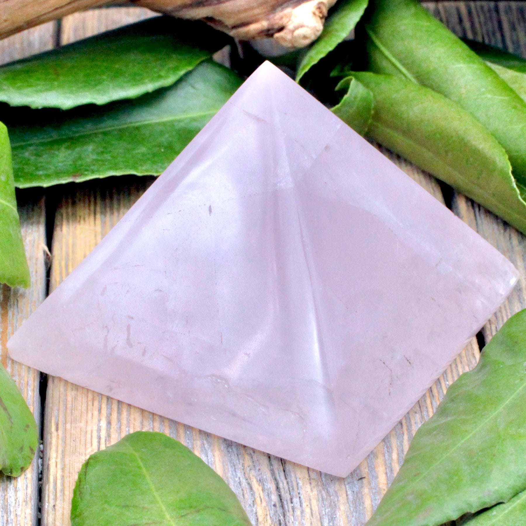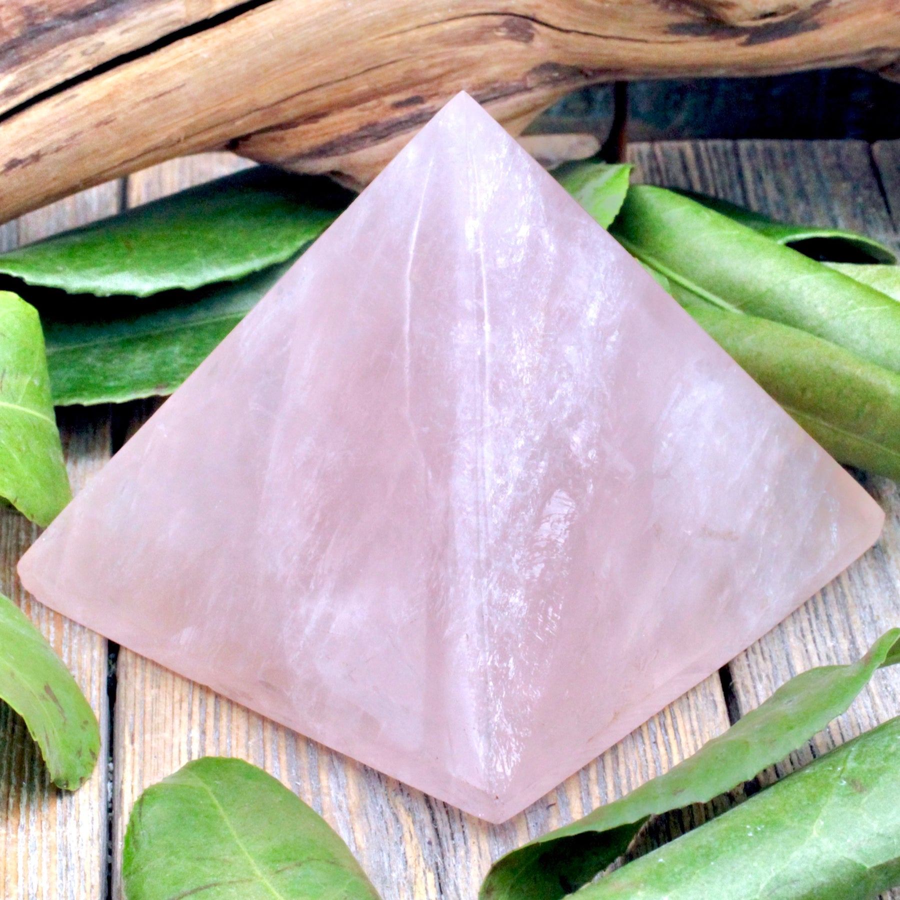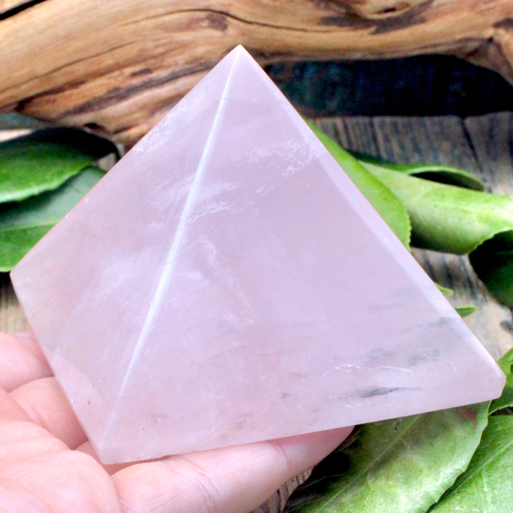 Introduce tranquility into your space with this Rose Quartz Pyramid. Crafted to harness the properties of Rose Quartz, this pyramid promotes emotional healing, encourages self-love, and emanates a gentle, positive energy. Elevate your surroundings with the soothing essence of love and harmony embodied in this exquisite piece.