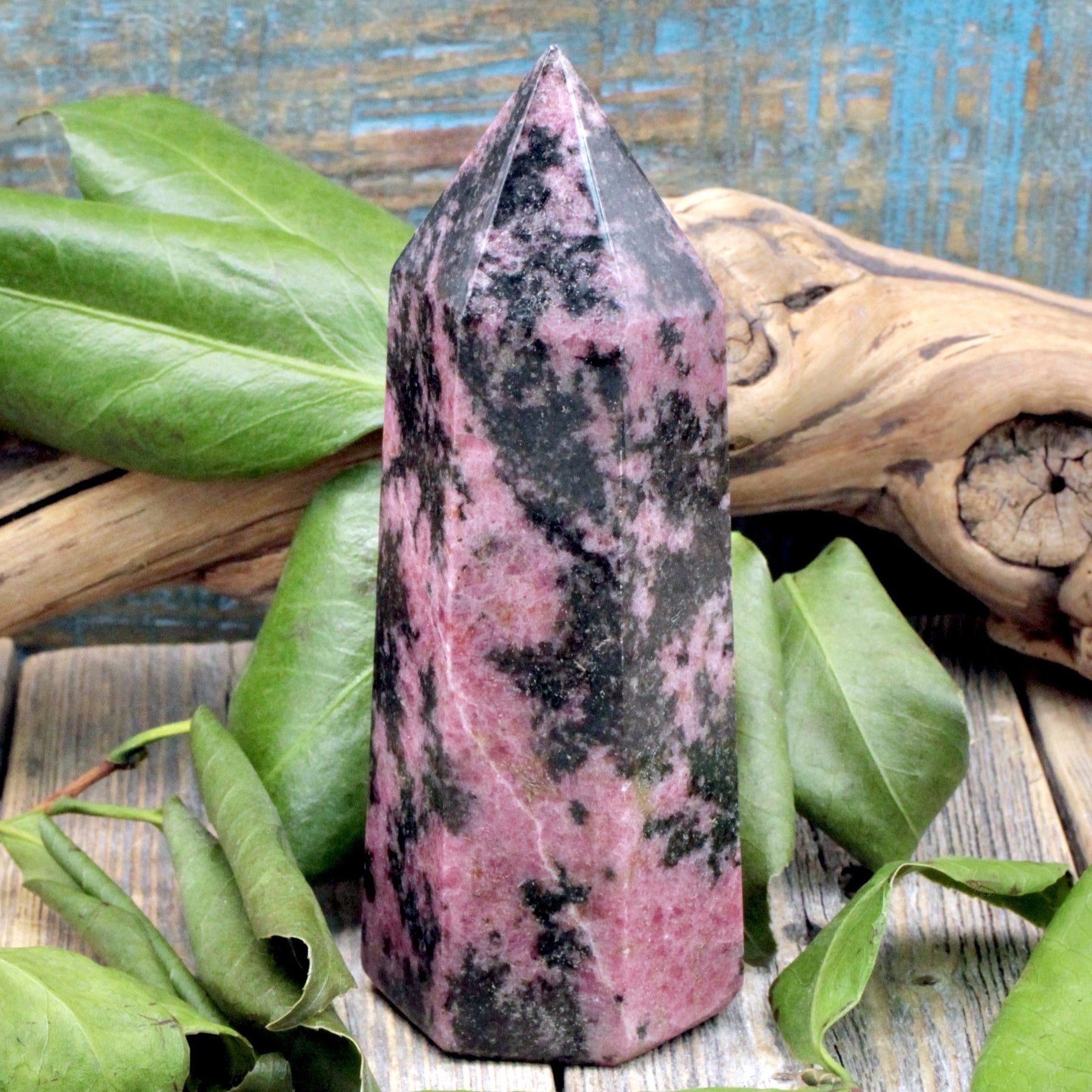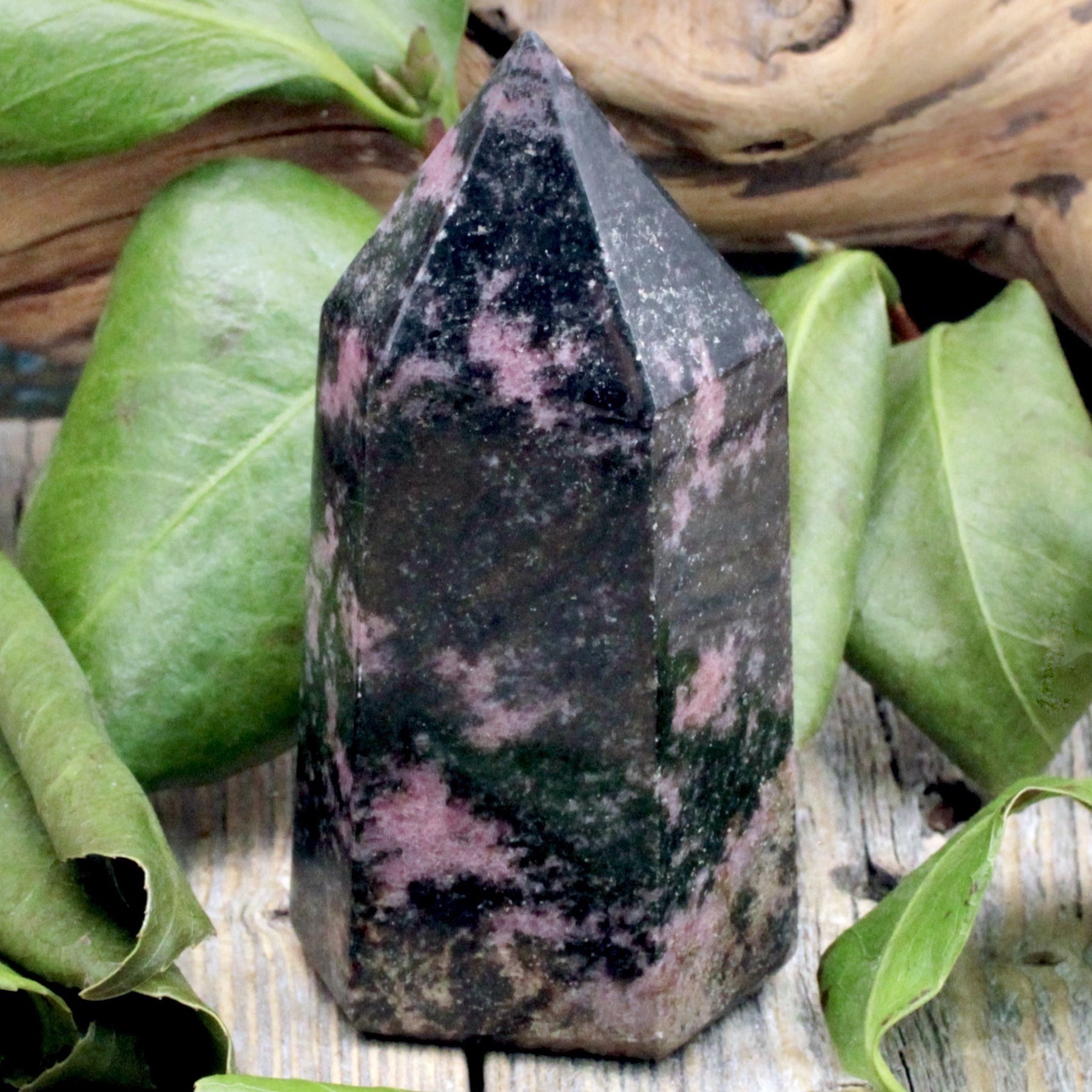 Feel the gentle support of your emotions with this Rhodonite Tower. Known for being the heart healer, Rhodonite offers a great deal of help to those dealing with grief, and works to teach us self-love and acceptance.