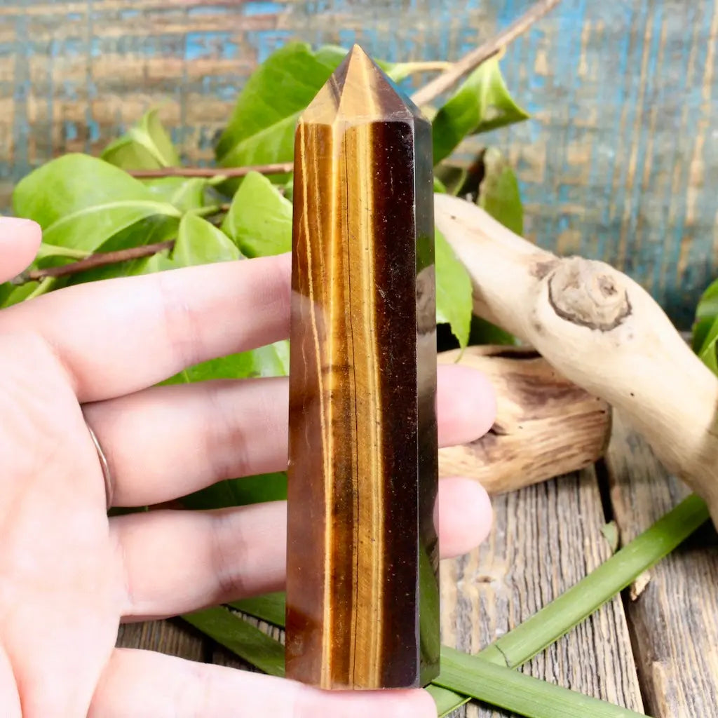 This gorgeous, sleek Tiger's Eye tower is an exquisite find. The way the light reflects off of the stone, is reminiscent of bronze which is quite fitting given the stone's propensity for protection and strength. Let this tower watch over you and manifest all of the wonderful things that you deserve.
