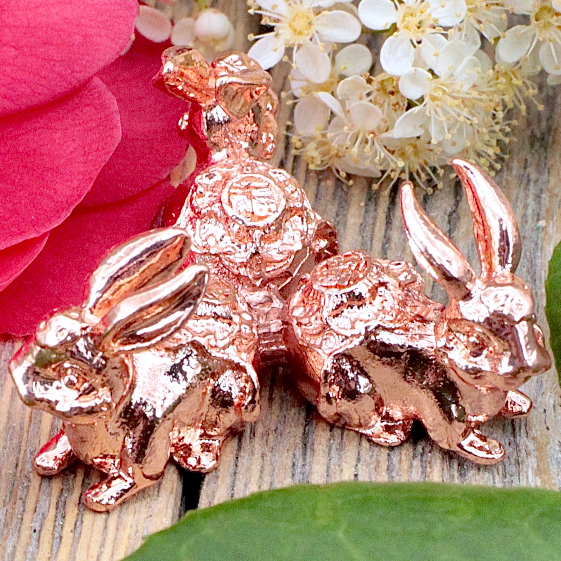 Elevate your space elegantly with this Rose Gold Triple Bunny Sphere Stand. Infusing sophistication and charm, it beautifully showcases your spheres.