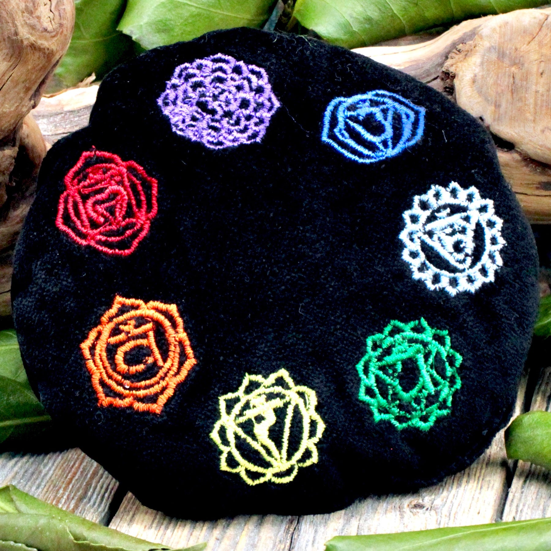 Display your favorite fragile crystal on this Black chakra Pillow. Immerse yourself in style and balance with this Round Black Chakra Velvet Pillow.